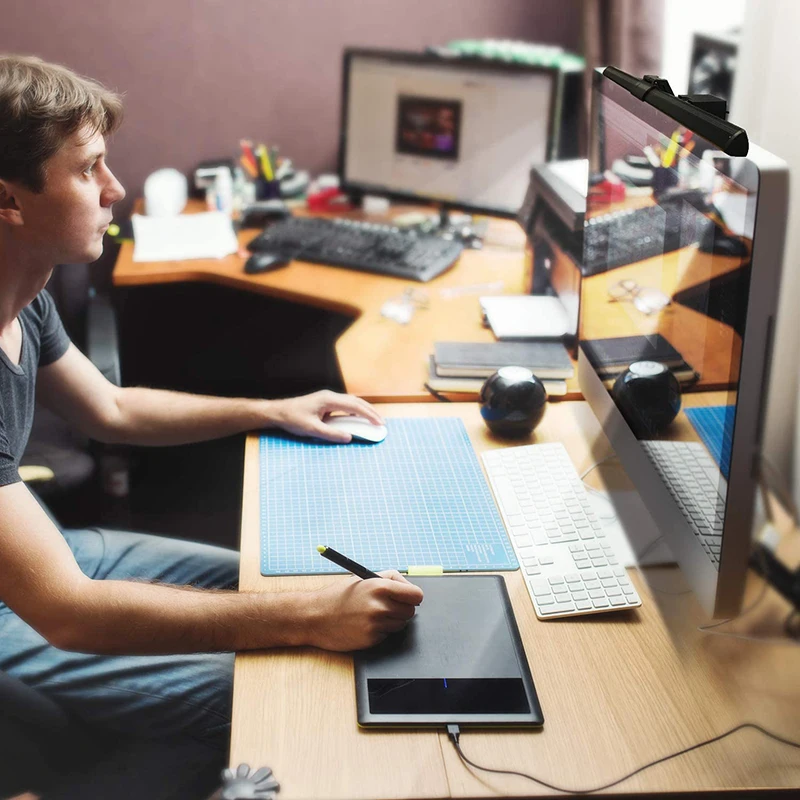 1-) Затемнение: 3 режима затемнения освещения и 9 регулируемых уровней яркости удовлетворят все ваши потребности. Наши компьютерные мониторы предлагают 9 различных вариантов яркости (20%, 30%, 40%, 50%, 60%, 70%, 80%, 90%, 100%), вы можете нажать кнопку «+» или «-», чтобы легко приглушить ее вверх и вниз в соответствии с вашими различными потребностями. 2-) изменение цвета: Отрегулируйте цветовую температуру, чтобы создать вам различные настроения (теплый белый, естественный белый и холодный свет). -Теплый белый позволяет расслабиться также подходит для просмотра видео или игр. -Естественный белый свет хорошо освещает вашу рабочую зону и не напрягает глаза. -Холодсветильник позволяет сконцентрироваться и повышает эффективность работы.