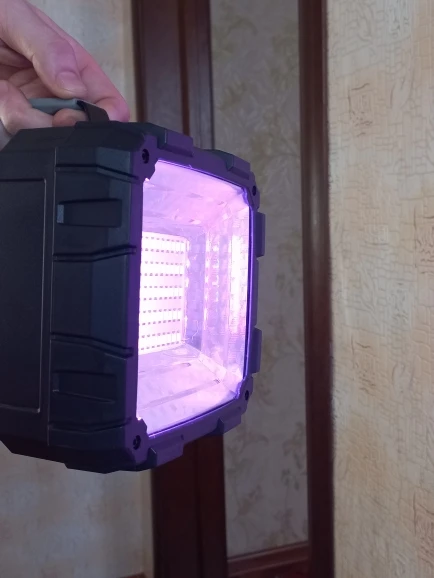 Может светить в обе стороны. Долго держит заряд.Есть режим полицейской мигалки.