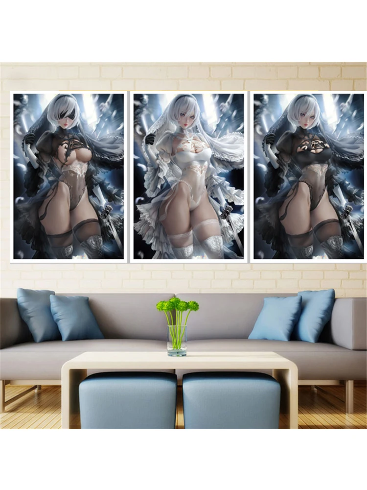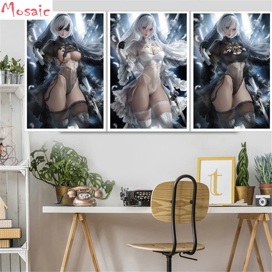 Аниме Алмазная мозаика для девочек 3 панели для вышивки крестиком, 5d diy, алмазная живопись, рукоделие, алмазная вышивка, подарок, Настенная картина
