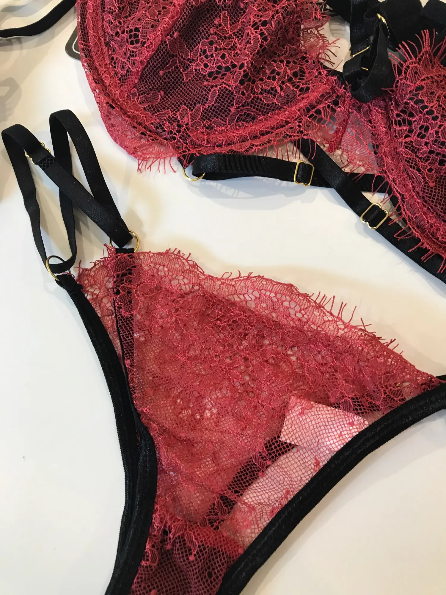 Комплект женского прозрачного кружевного нижнего белья, с подвязками