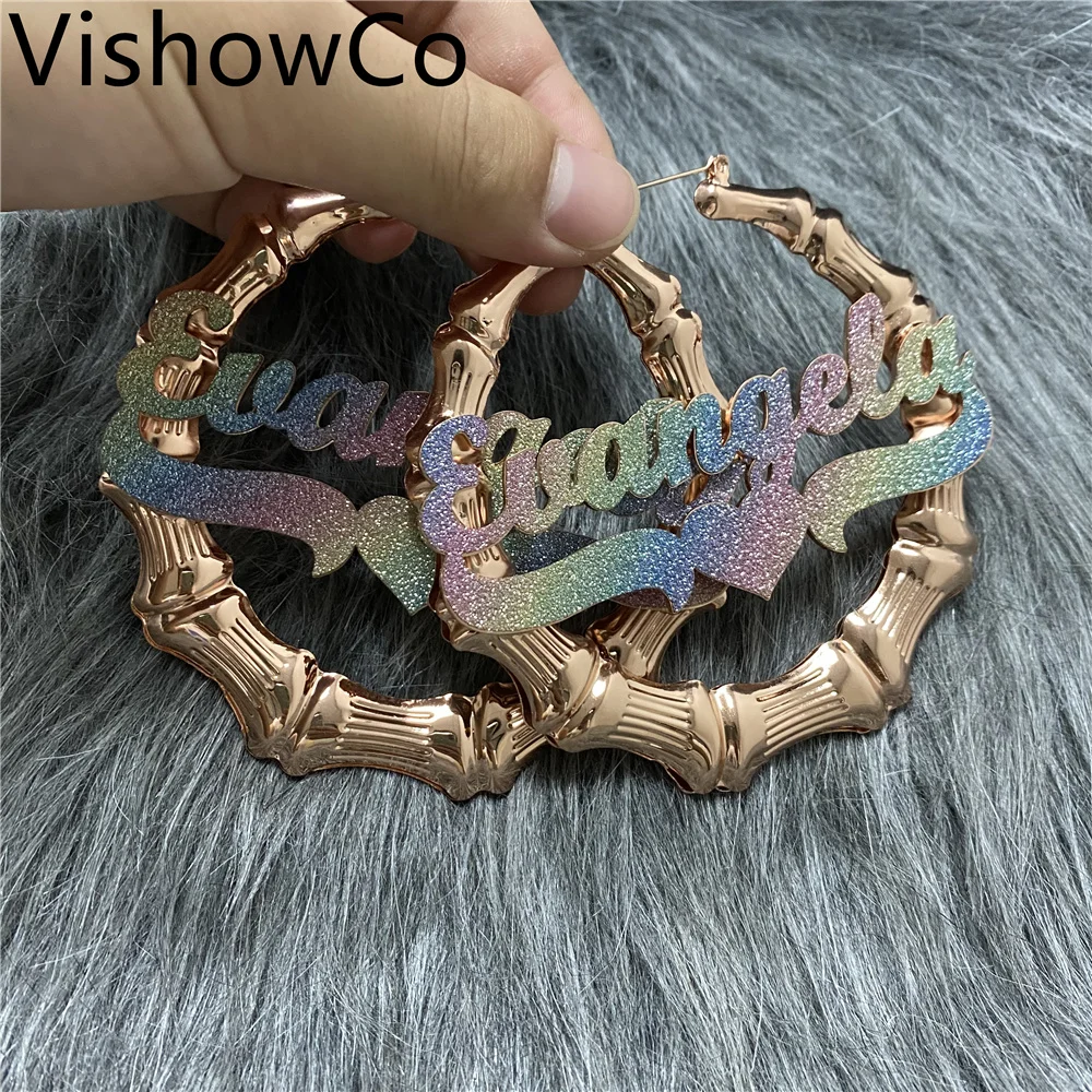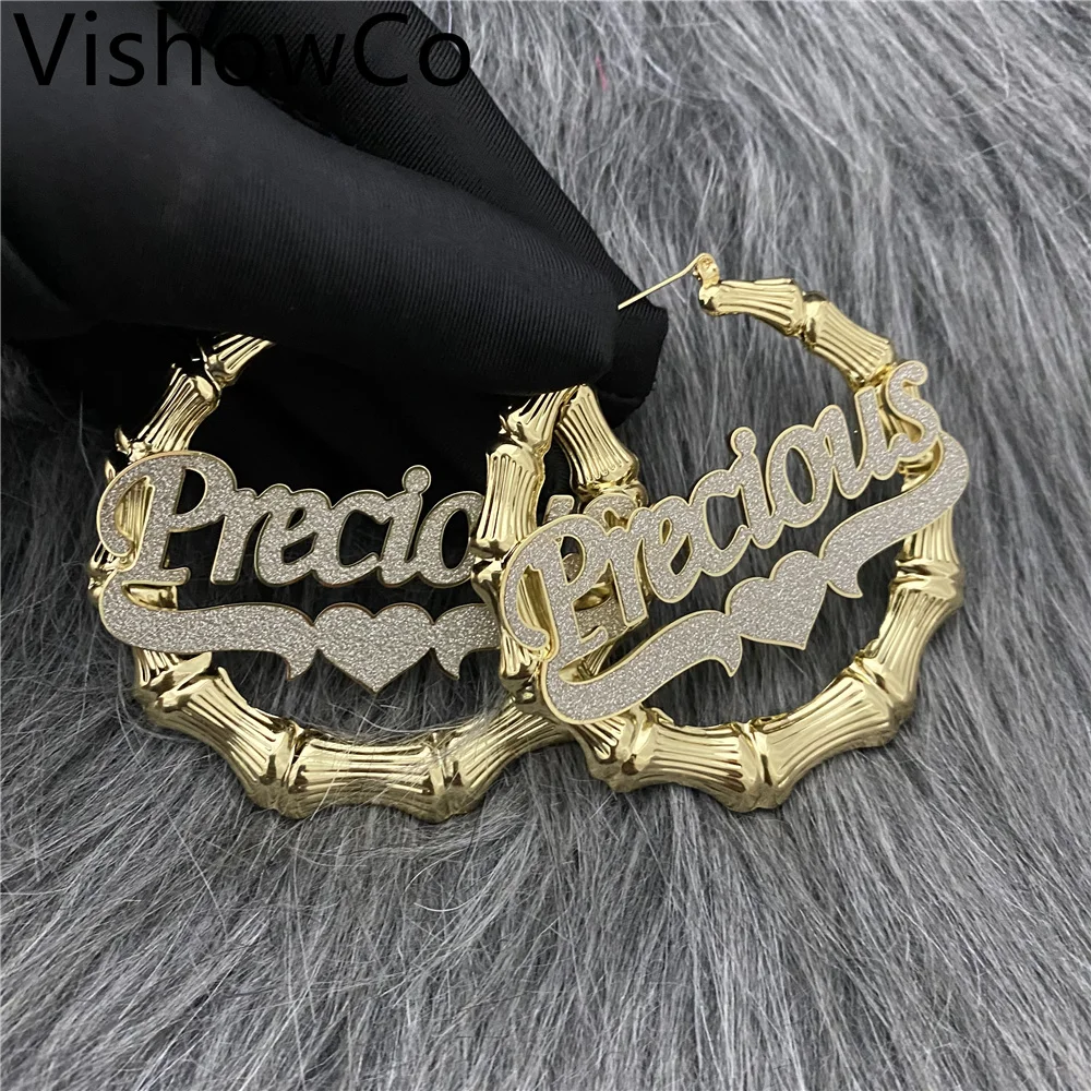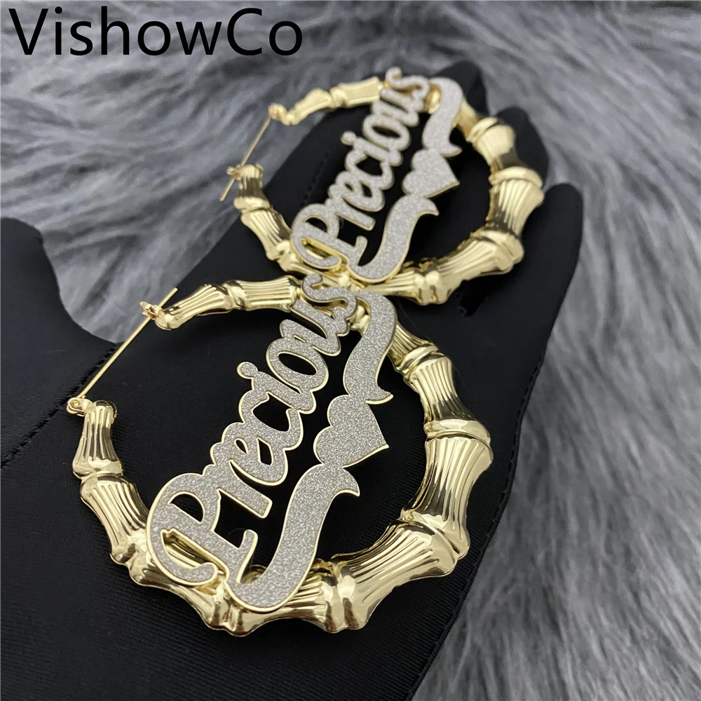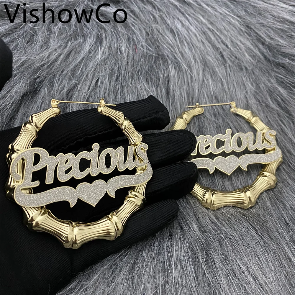 Висячие серьги с именем VishowCo, персонализированные круглые серьг...