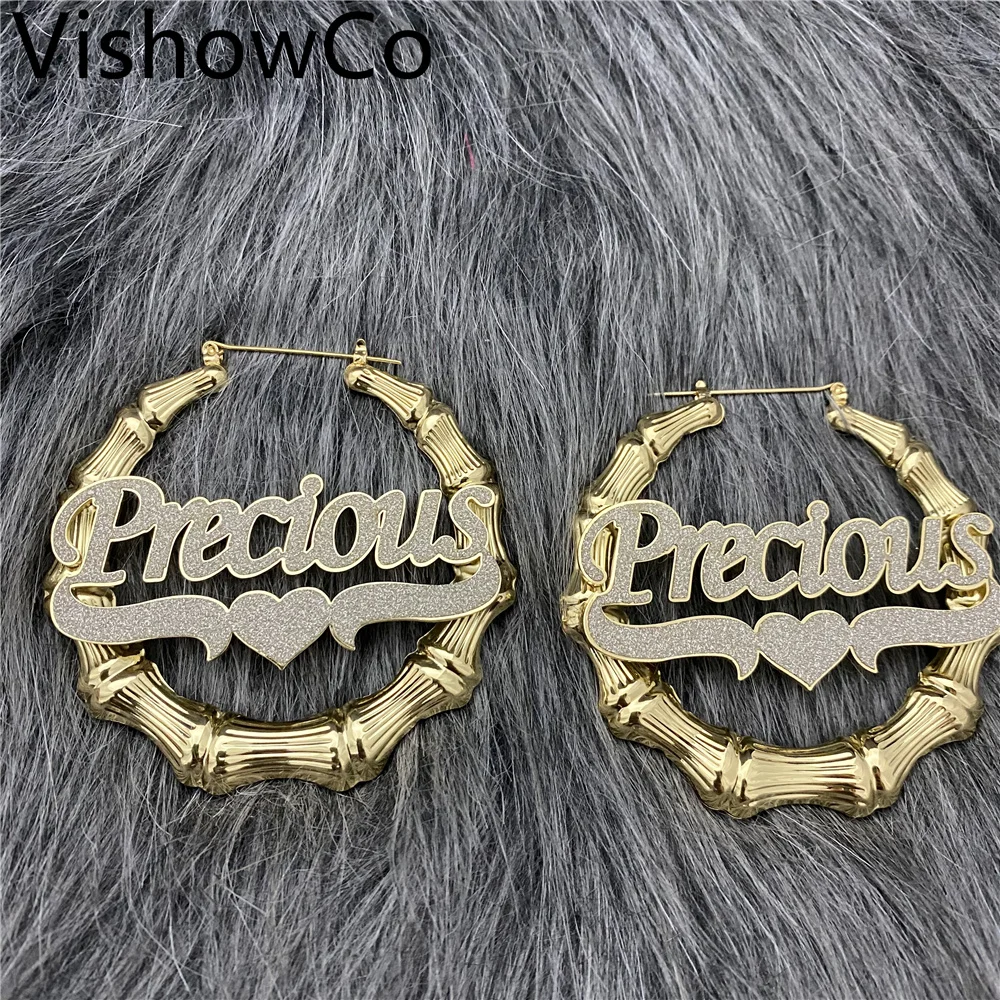 VishowCo бамбуковые обручи персонализированные серьги из нержавеюще...