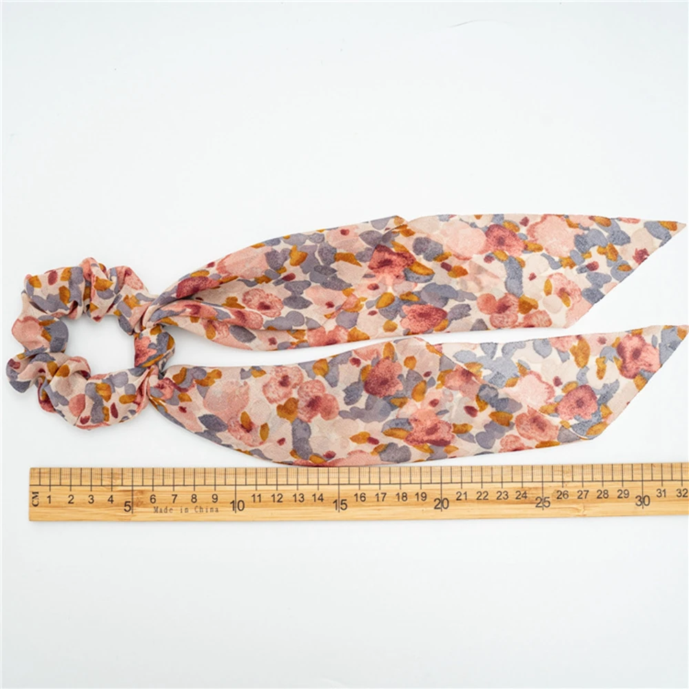 Женская резинка для волос, шифоновая шелковая лента с цветочным бантом, аксессуары для волос, 2021