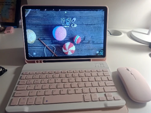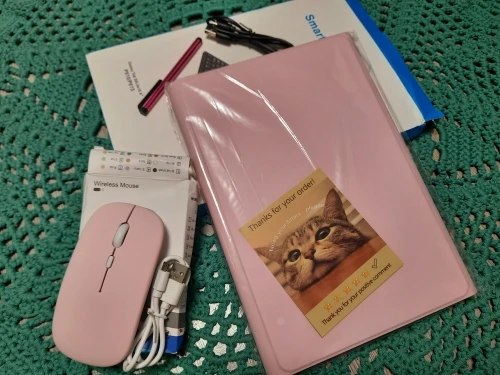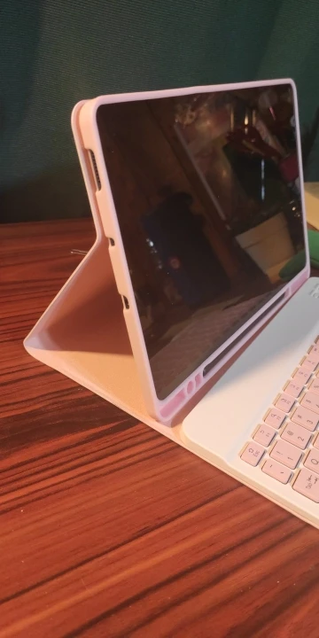Он пришел через 6 недель. Немного более розовый, чем на фото, которое я сделал .. Это как пастельно-розовый☺Изделие действительно красивое. Клавиатура на магните к корпусу. Чехол и мышь могут подключаться к Bluetooth. Я очень доволен этой покупкой.