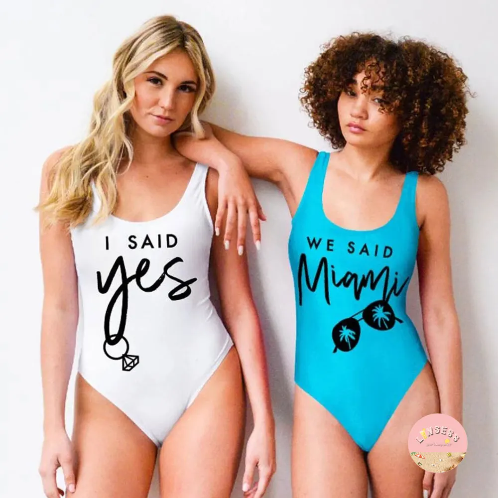 Слитный купальник для девичвечерние и подружки невесты Майами, я сказал да