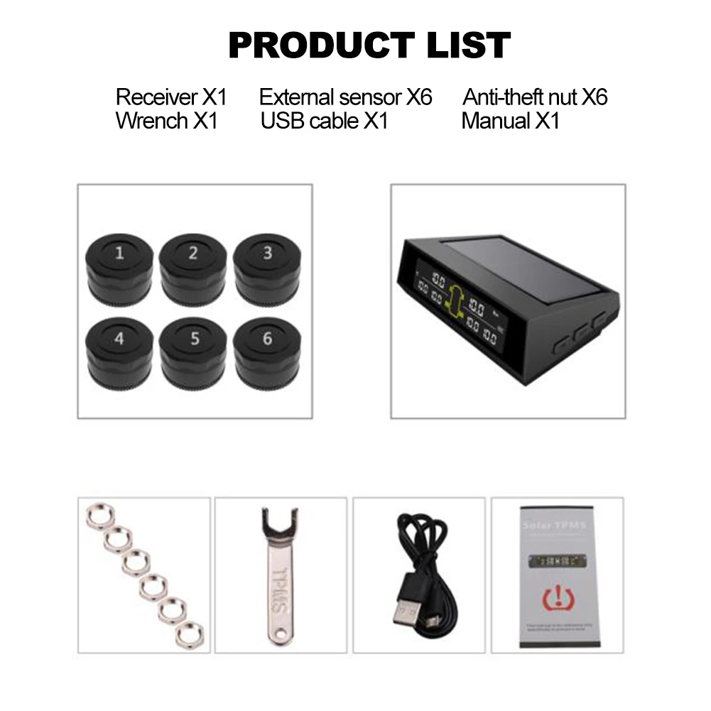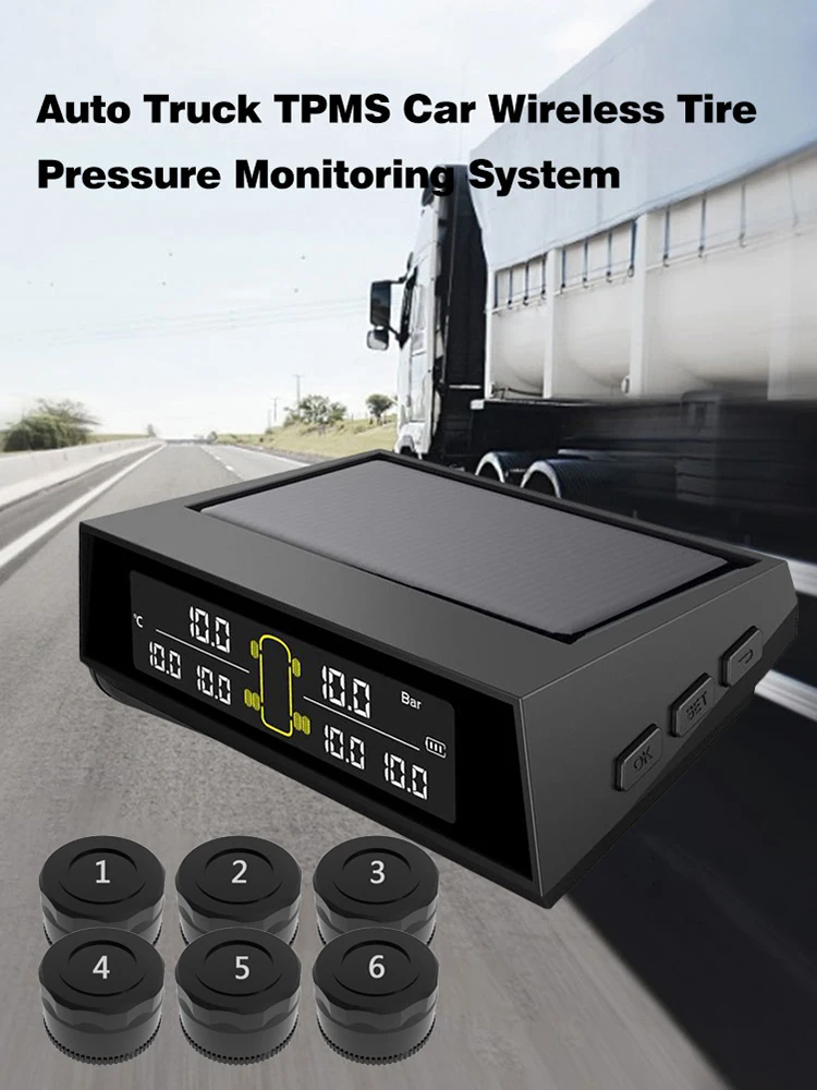 Система мониторинга давления в шинах, 6-колесная Беспроводная TPMS с солнечной батареей, датчик давления в шинах