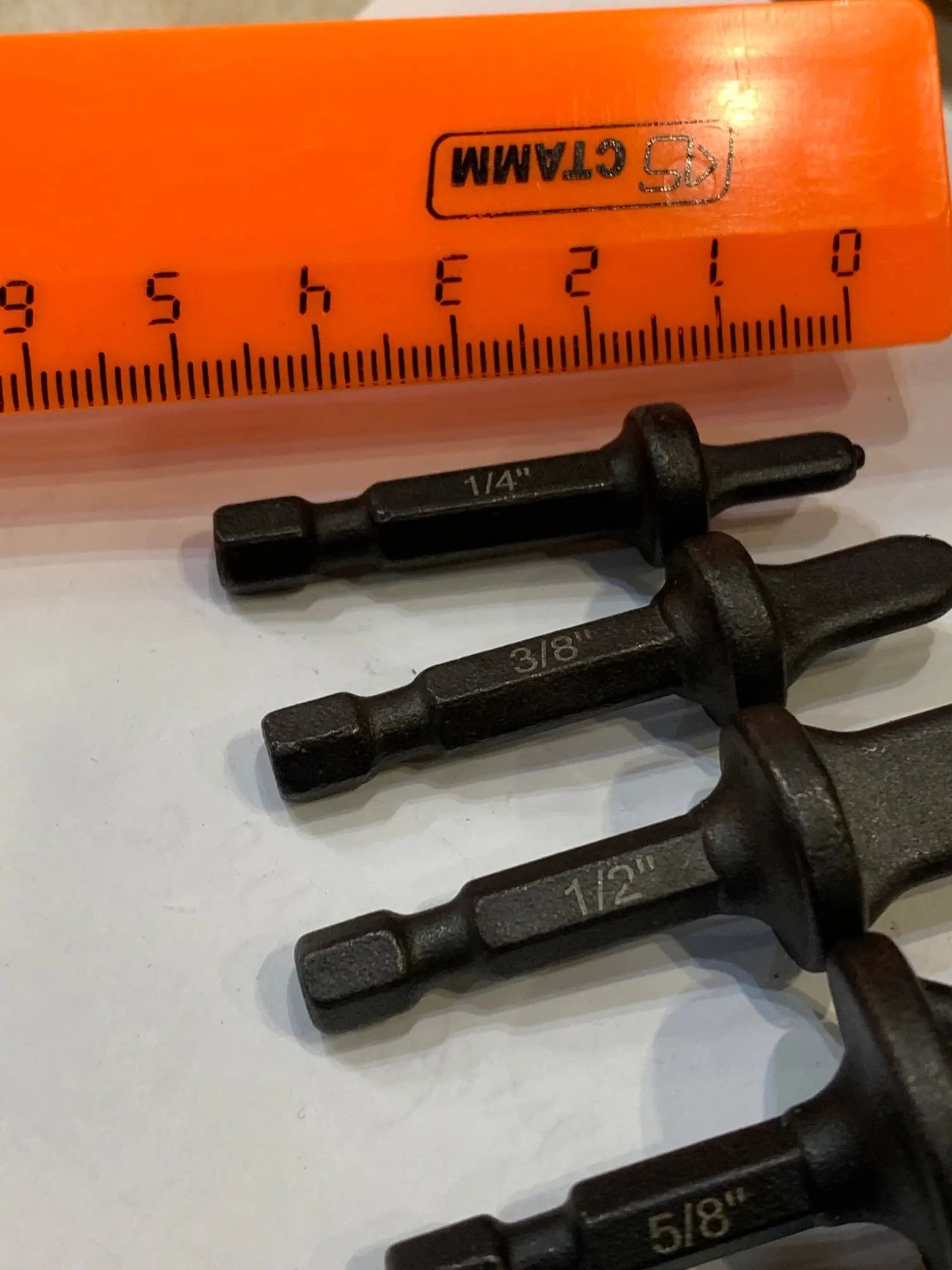Технические характеристики: 3/4 (19 мм), 5/8 (15,9 мм), 1/2 (12,7 мм), 3/8 (9,5 мм), 1/4 (6,3 мм)