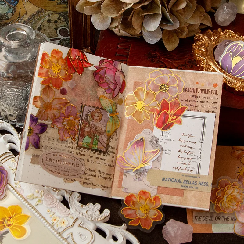 Наклейка с цветком из золотой фольги, 30 листов, ретро, Бабочка, до...