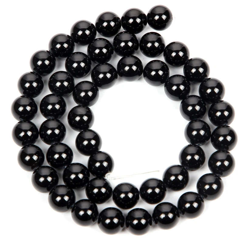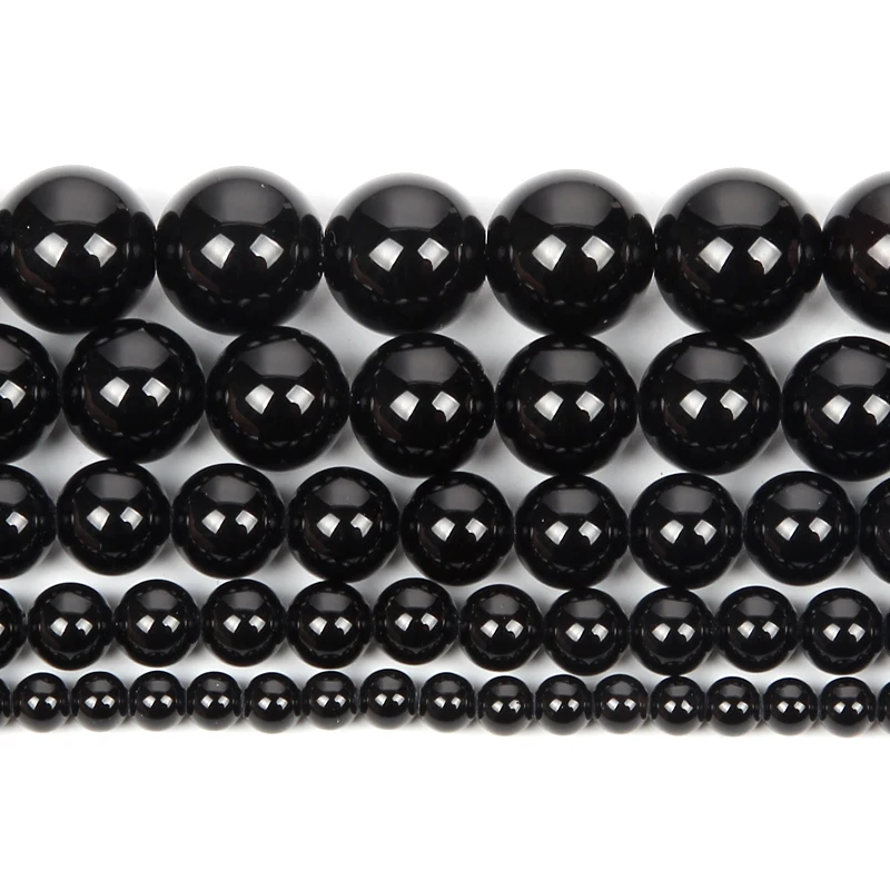 Круглые бусины россыпью из натурального каменные черные бусины для изготовления ювелирных изделий, рукоделия, браслетов сделай сам, нити 4681012 мм