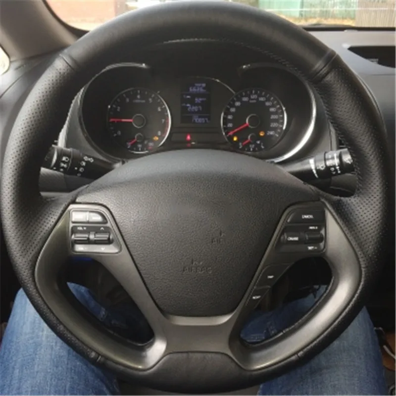 Чехол рулевого колеса автомобиля на заказ для Kia K3 2013 K2 Rio 2015 2016 Ceed Cee 'd 2012-2017 Cerato, Кожаная оплетка для руля