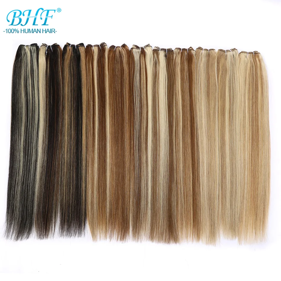 BHF Straight натуральные кудрявые пучки волос индийский Реми 100 г Ombre блонд цвет 100% натуральные человеческие волосы для наращивания от 16 до 28 дюймов