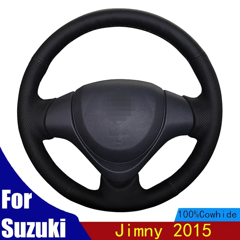 DIY чехол рулевого колеса автомобиля из натуральной кожи черного цв...