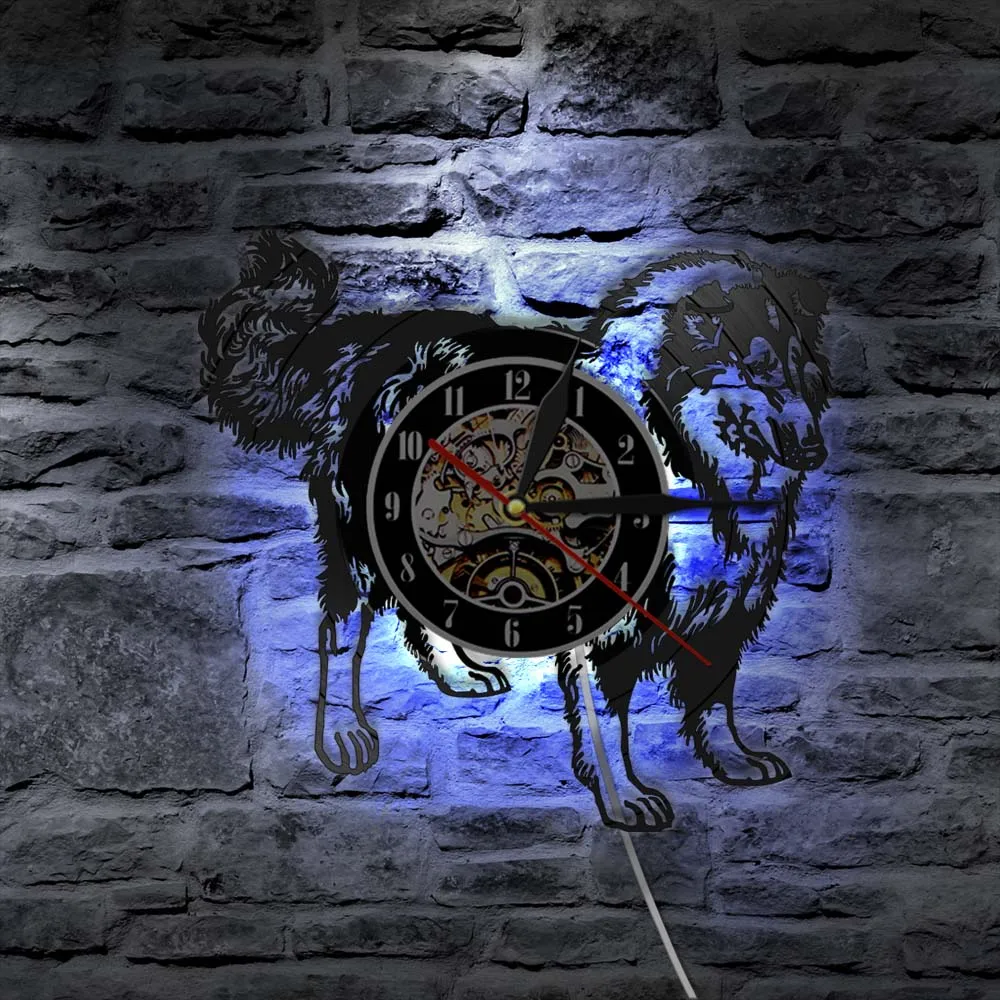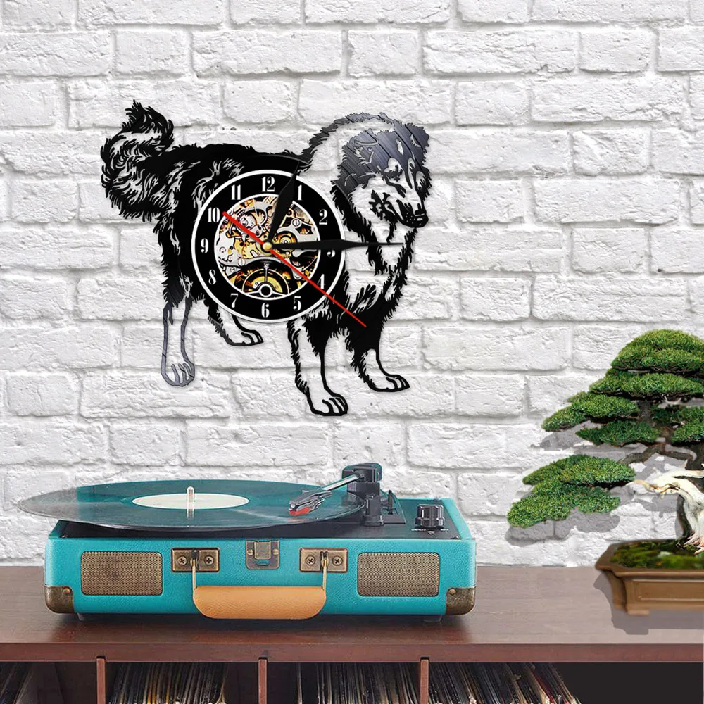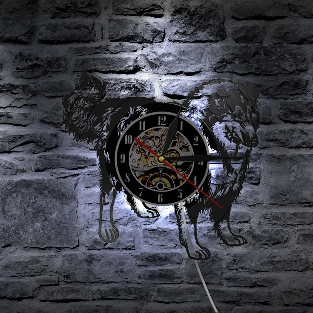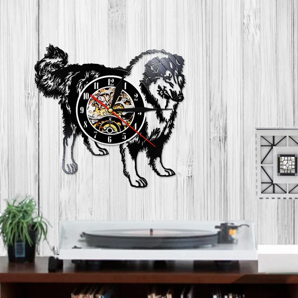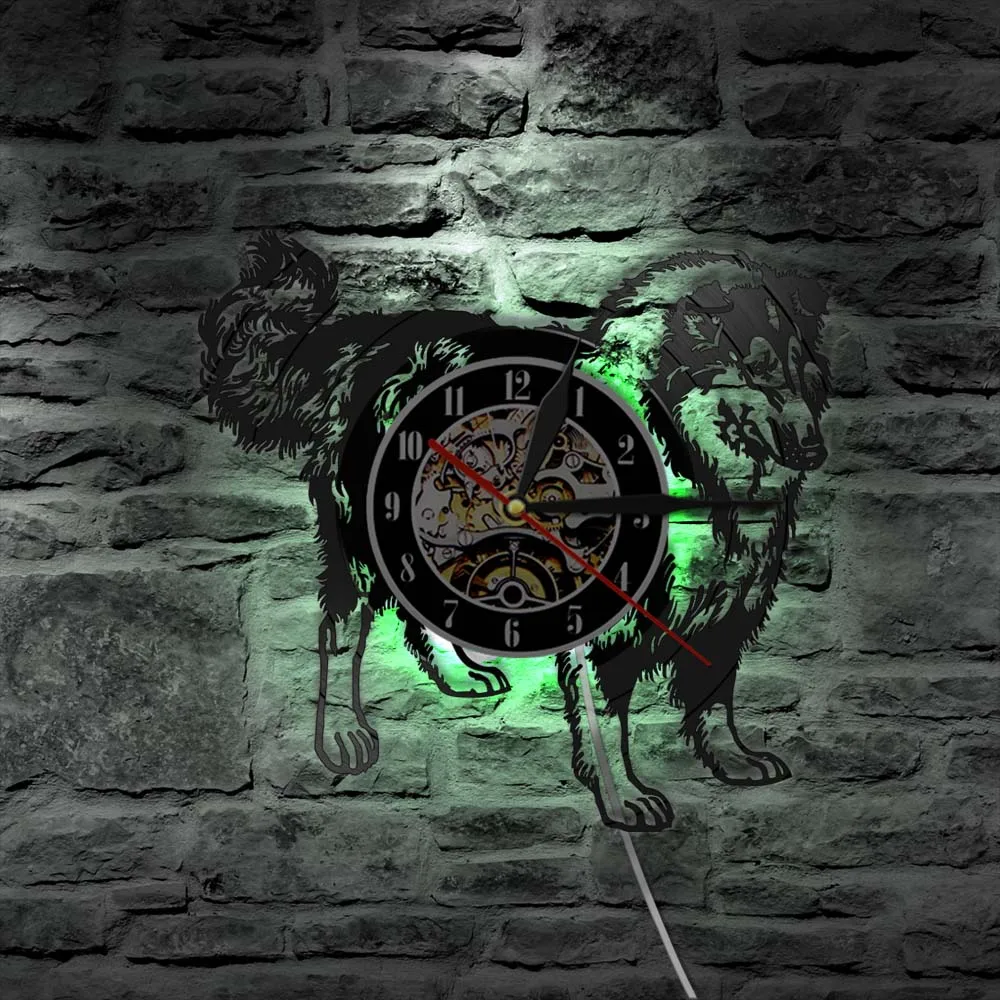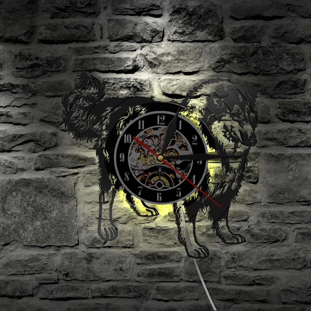 Настенные часы с виниловой пластиной и изображением собаки шнауцера