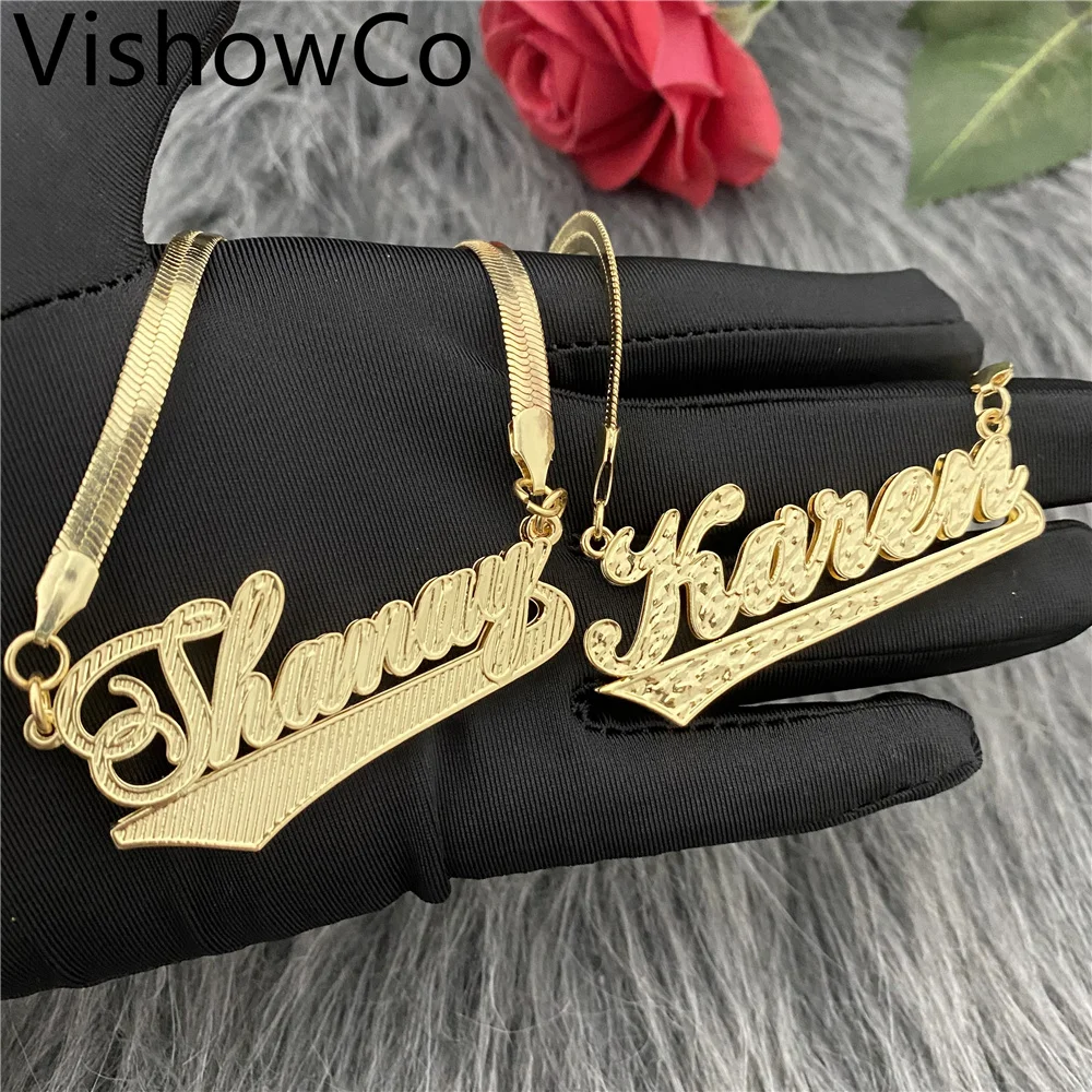 Индивидуальное ожерелье с именем VishowCo, двойное позолоченное оже...