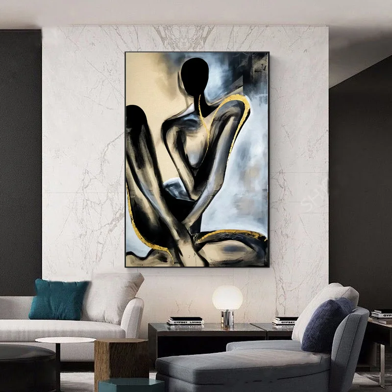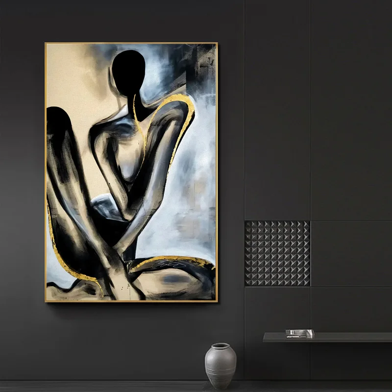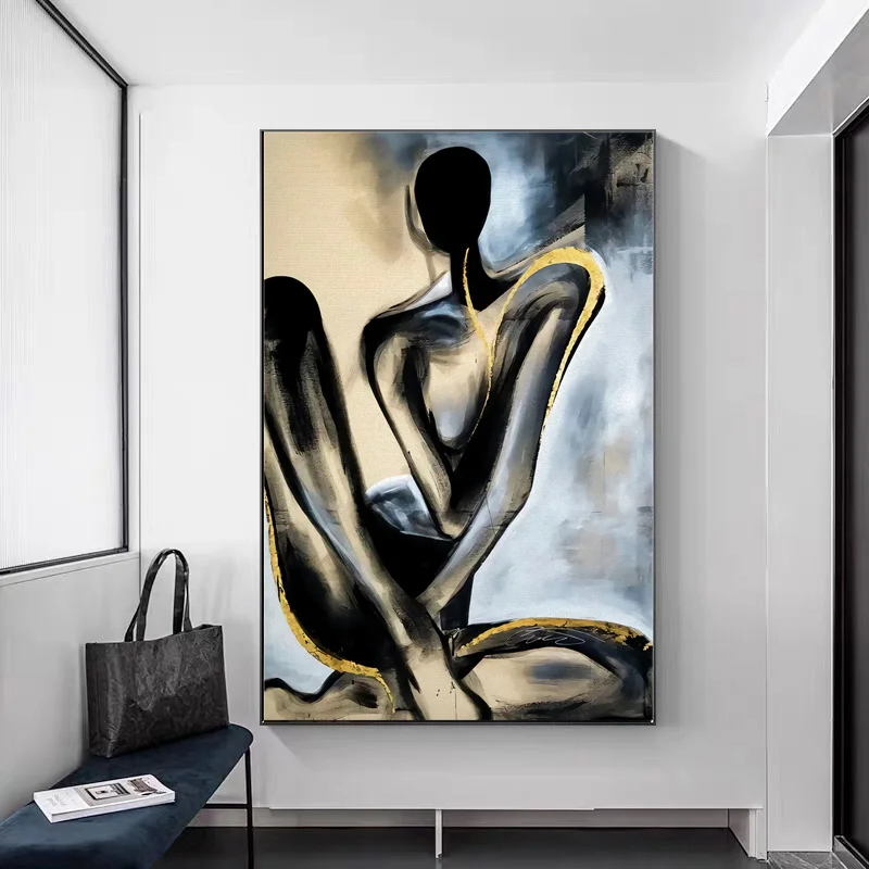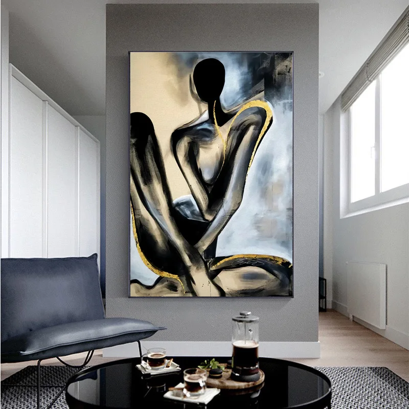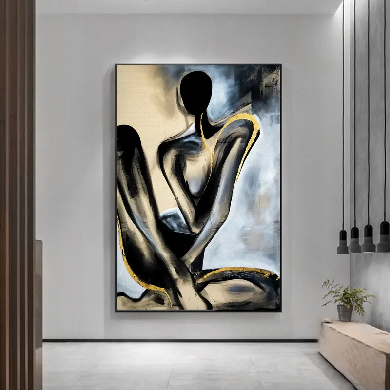 Абстрактные обнаженных тела Картина на холсте женщина черного и золотого цвета плакат и принты настенные картины для Гостиная домашняя декорация для дома и отеля