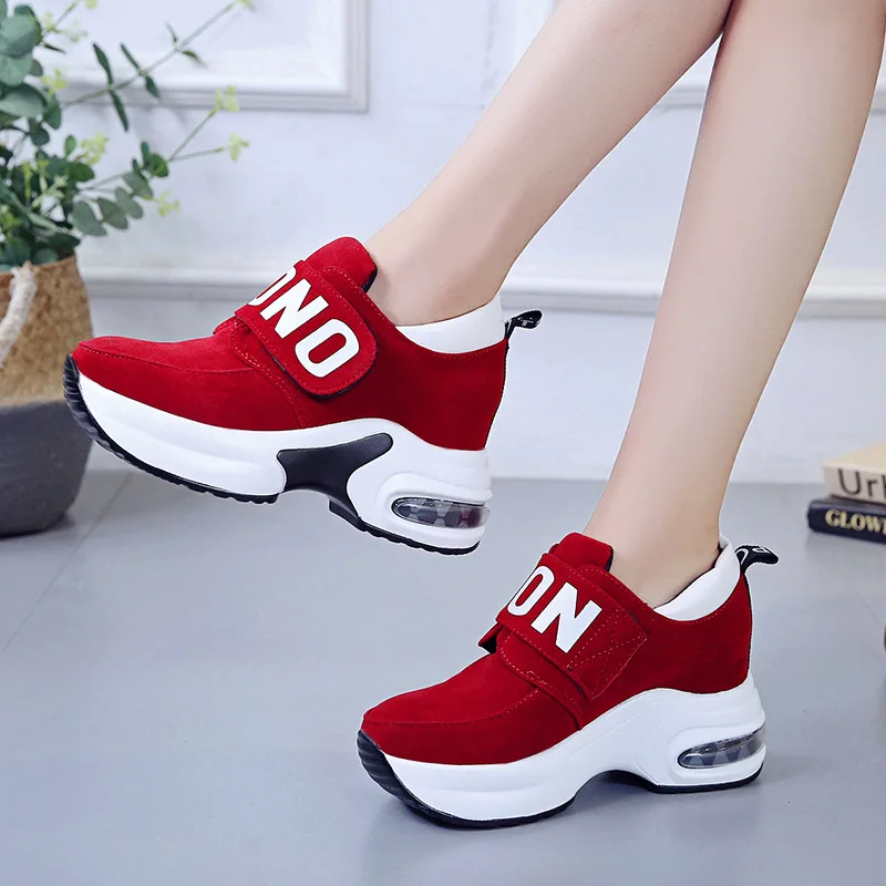 Кроссовки женские, черные, красные, на платформе, повседневные кроссовки