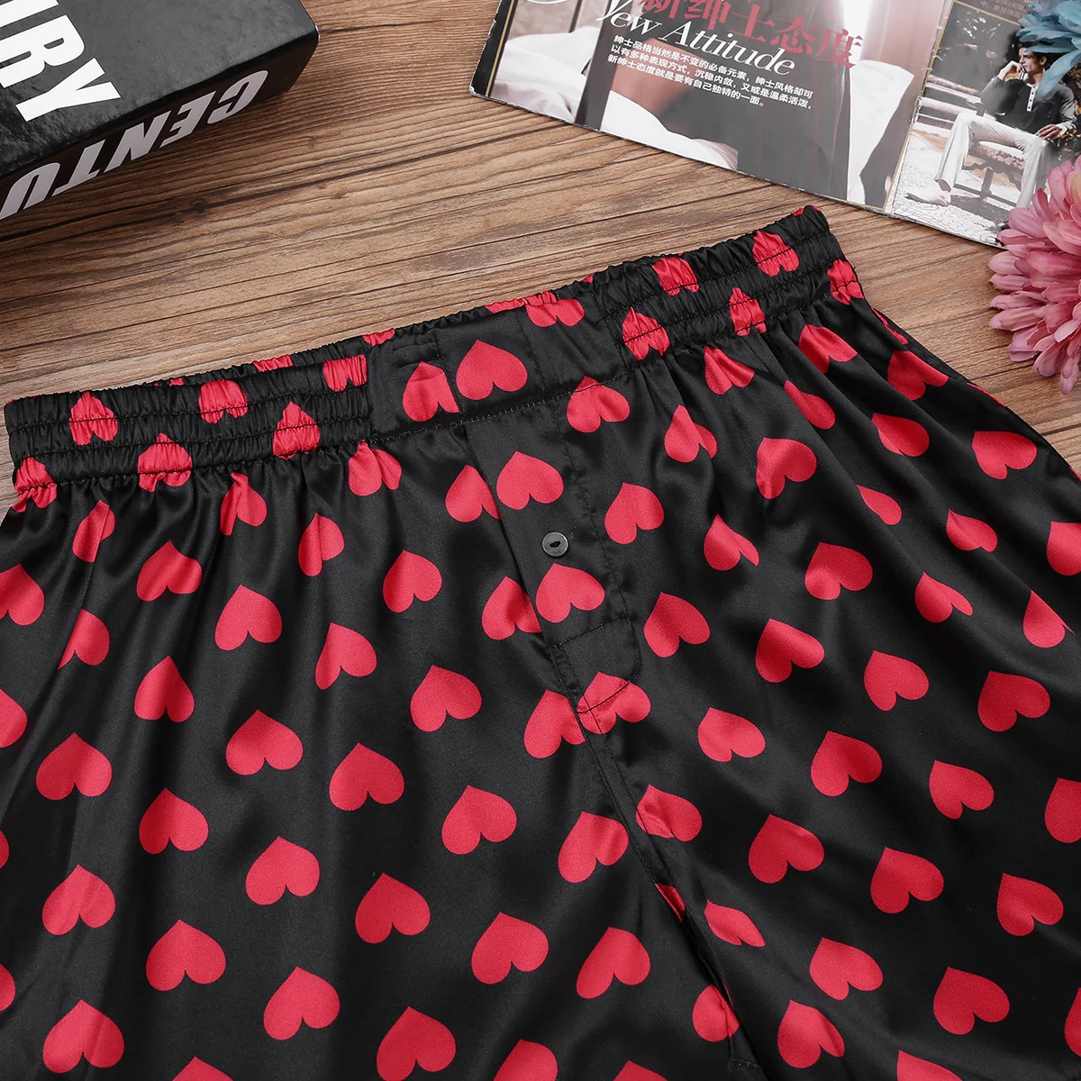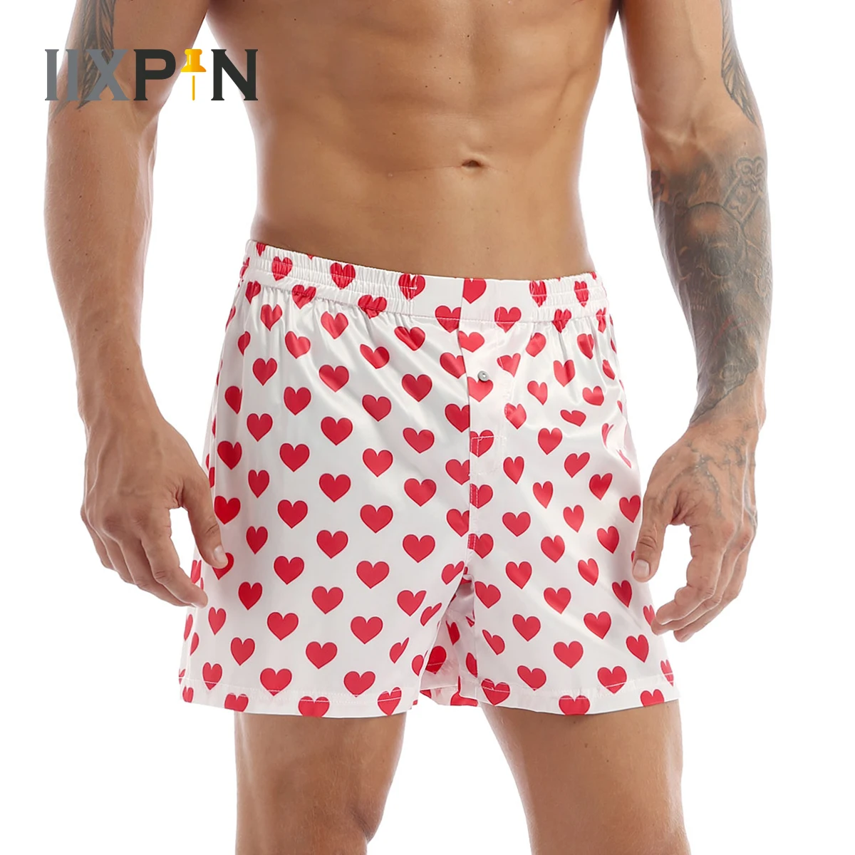 Мужские шорты-боксеры, свободные, с застежкой.С широким эластичным поясом для удобной посадки, с принтом сердечек по всему шорту.Очень мягкий и удобный, стильный и модный дизайн сделает вас более привлекательным.Идеально подходит для ночного белья, занятий спортом, пляжной одежды, отдыха или повседневной носки и т. д.Перед оформлением заказа внимательно сверьтесь с таблицей размеров. Ручная стирка в холодной воде, машинная стирка.