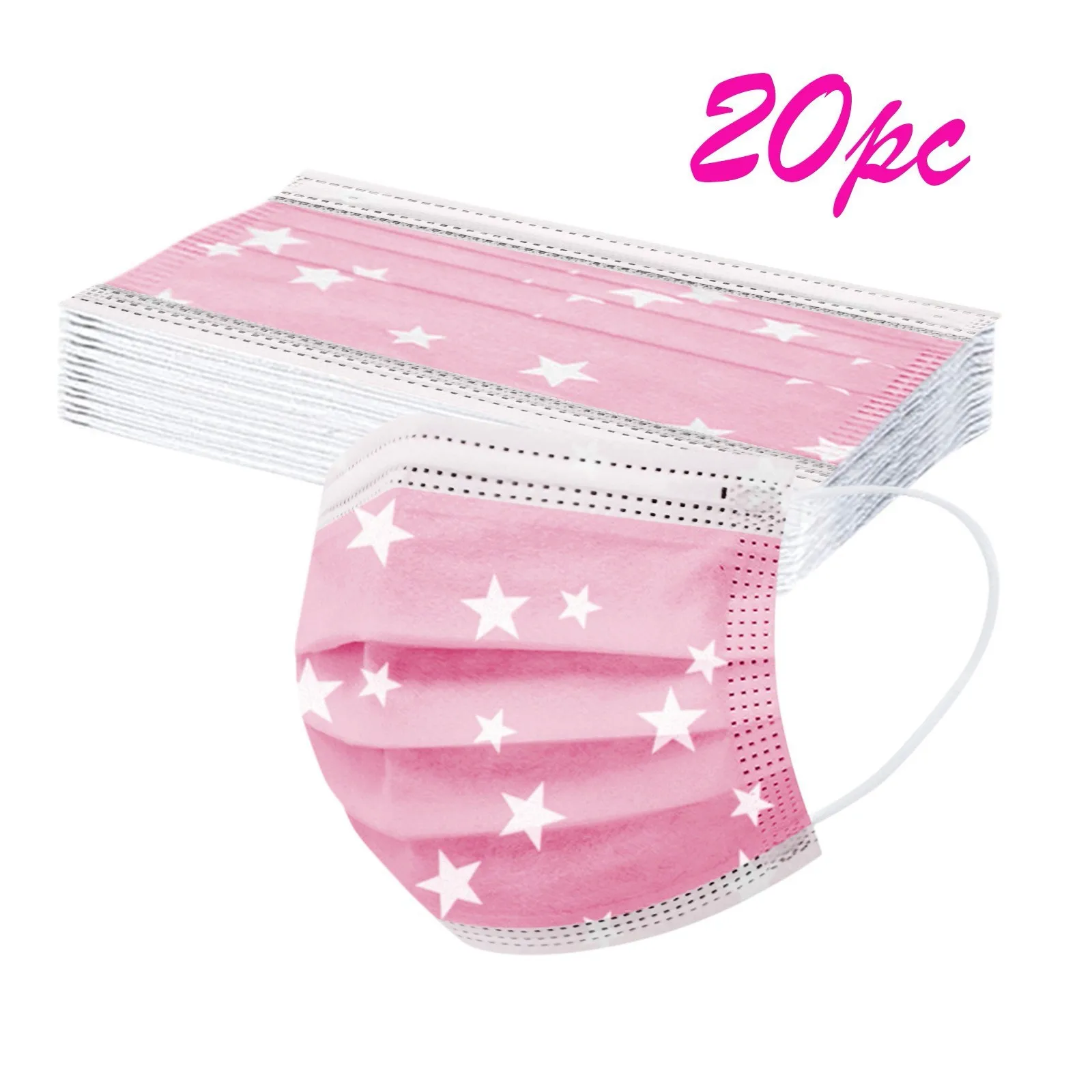 Маска для лица для взрослых унисекс розовая с милым принтом звезд одноразовая дышащая 3-слойная маска с ушными петлями мягкая приятная для кожи Модная маска