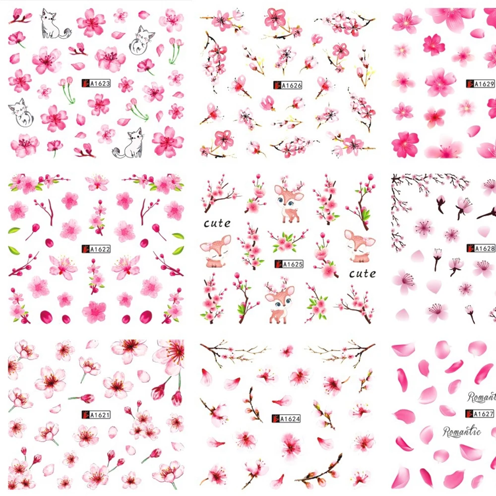 Наклейки для ногтей с розовыми цветами, 12 шт.