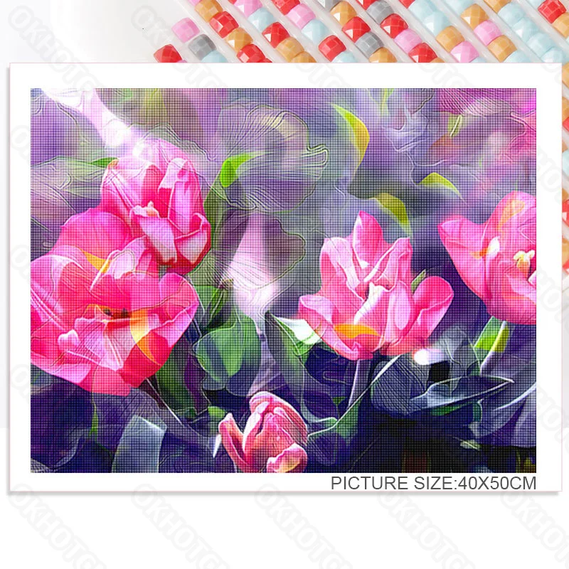 Алмазная живопись сделай сам, розовые, красные цветы, лаванда, сад,...
