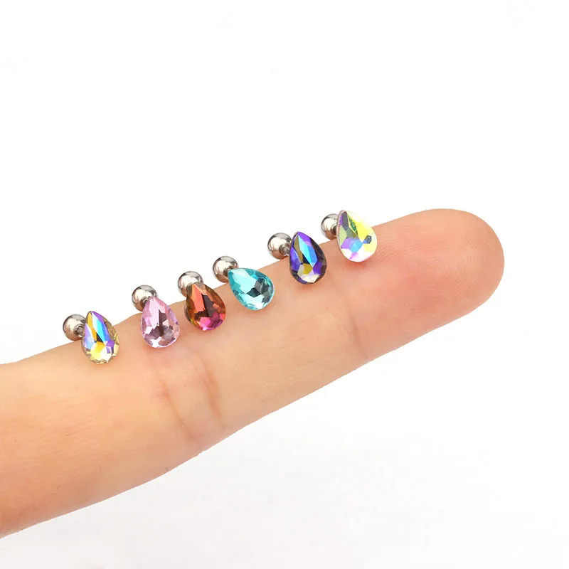 Женские серьги-гвоздики для пирсинга на хрящевую ткань, с фианитами