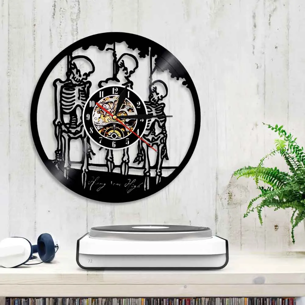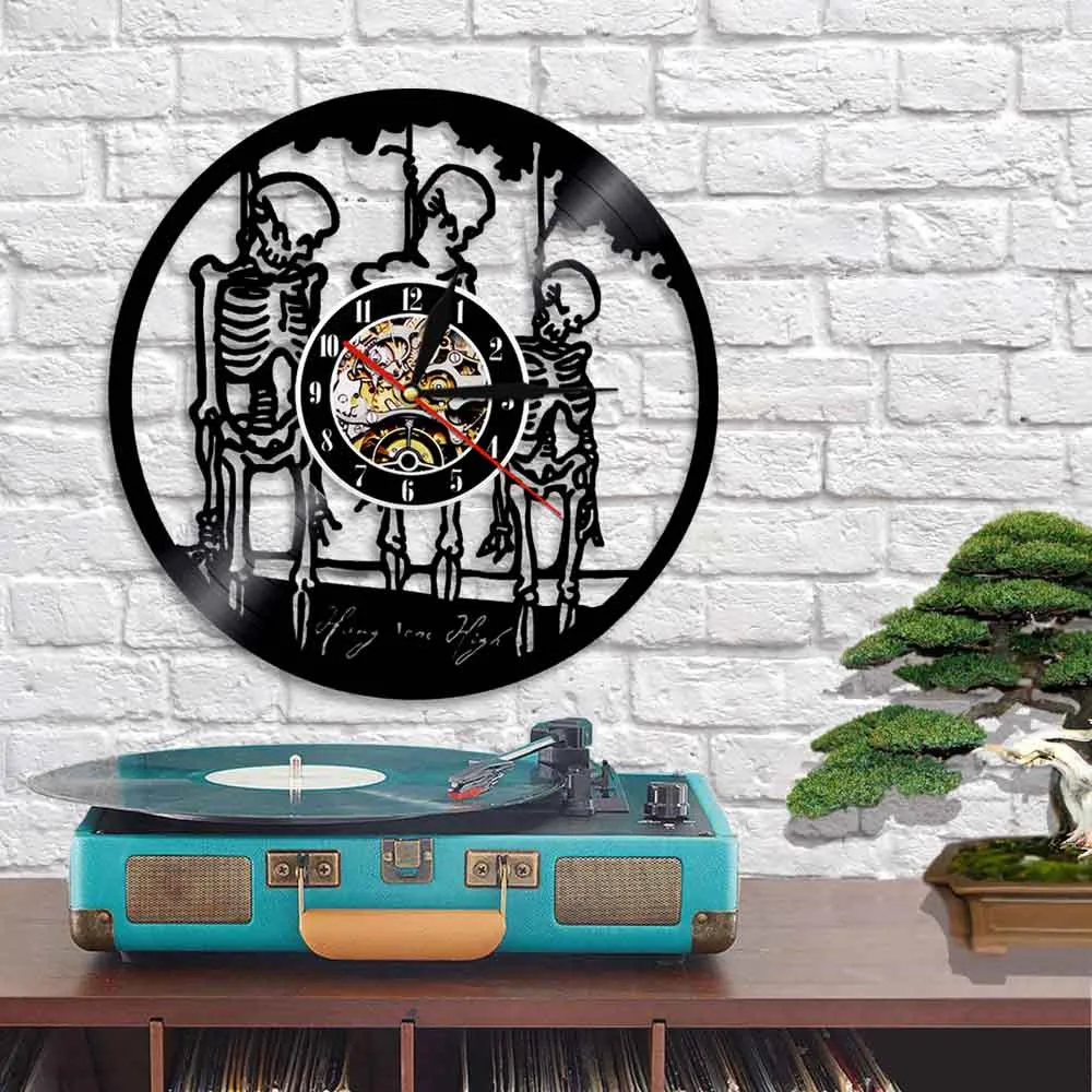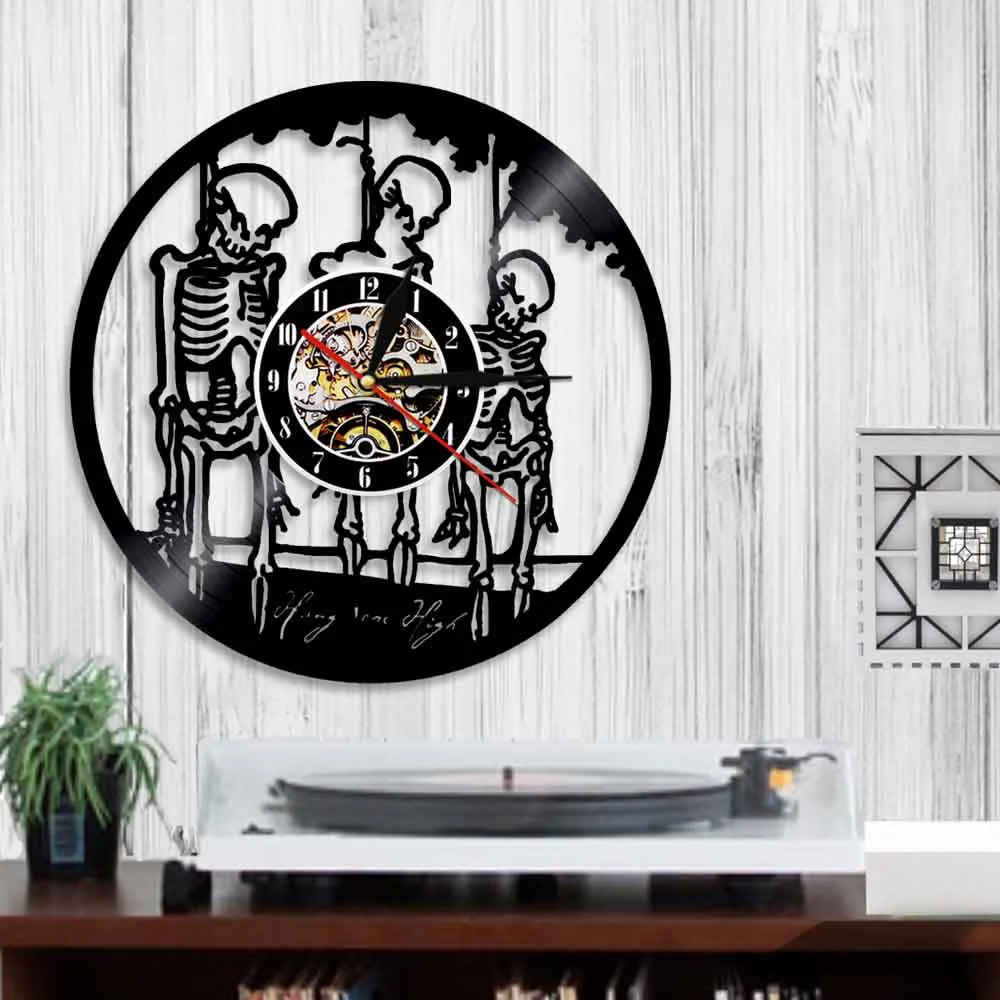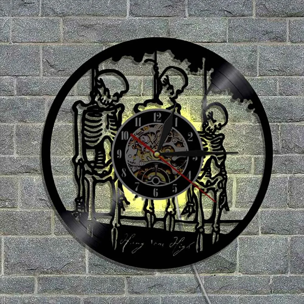 Настенные часы с тремя черепами на веревке, скелеты из натуральной виниловой пластинки, Хэллоуин, подвесные, высокий домашний декор, светодиодный ночник