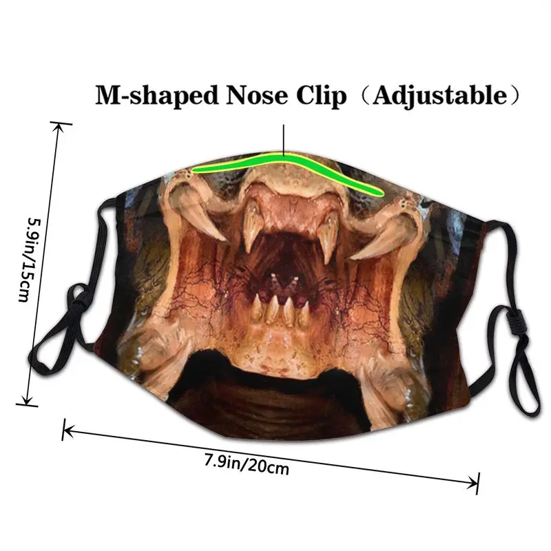 Хэллоуин Хищник Non-одноразовая маска для лица ужас Alien Monster Xenomorph Пылезащитная крышка респиратор Рот-муфельная печь