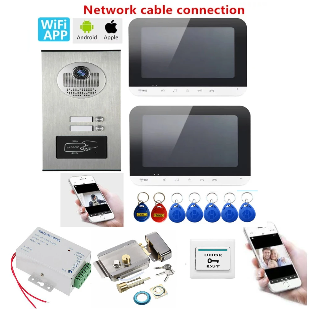 Домофон комплект APP дистанционного Управление 7 дюймовый монитор Wi-Fi видео-дверной звонок RFID Камера аудио дверной звонок с 2 мульти квартиры