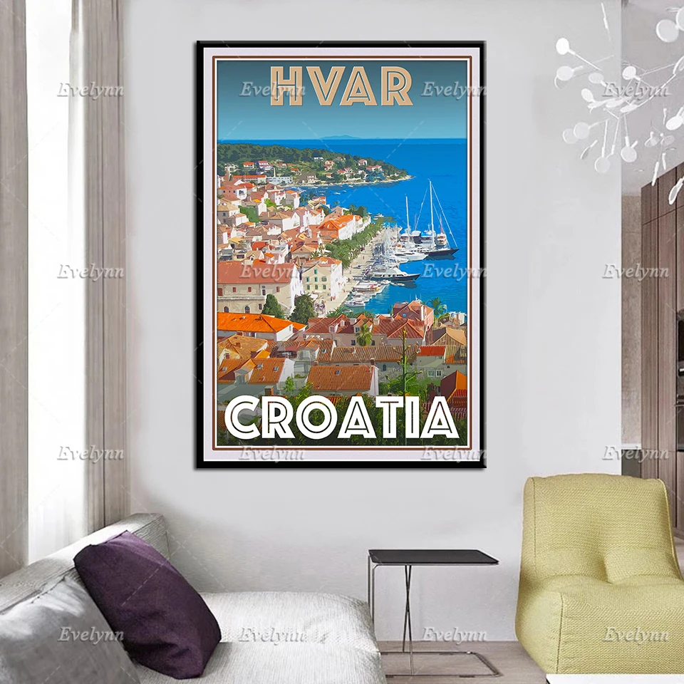 Ретро винтажный стильный постер для путешествий, желтовато-желтоватая Хорватия и принты на холсте, настенные картины для декора гостиной