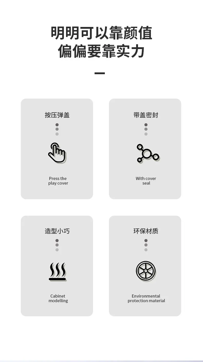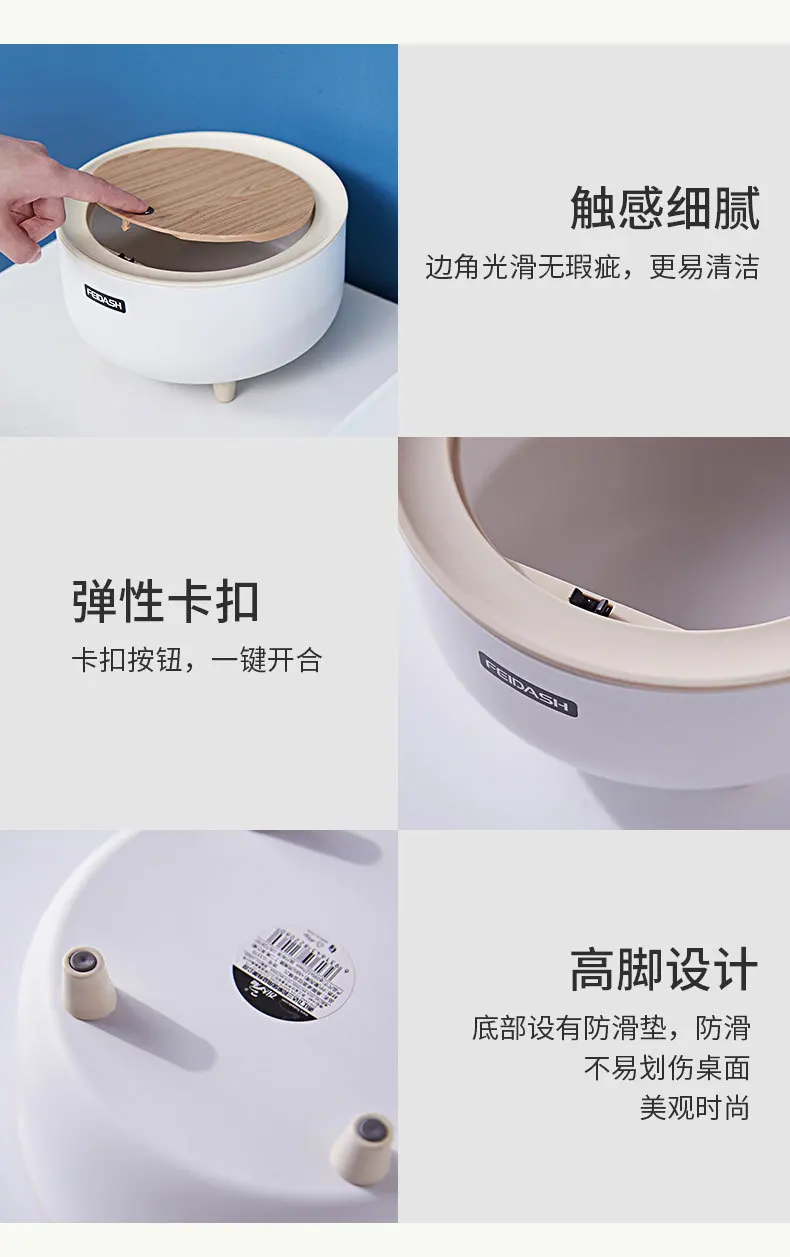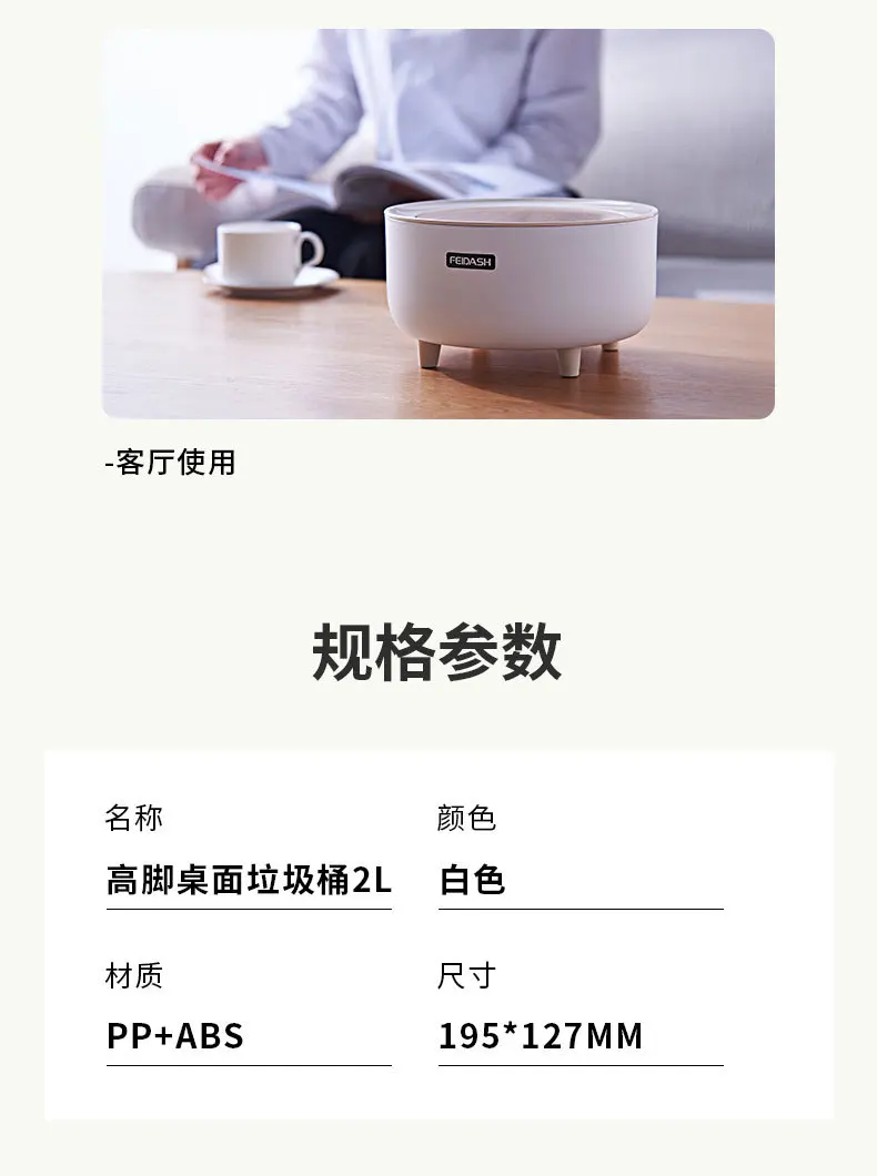Название продукта: настольная мусорная корзина с высокой стопой Цвет: белый Материал: PP-ABS Размеры: 195*127 мм Вес брутто: 400 г