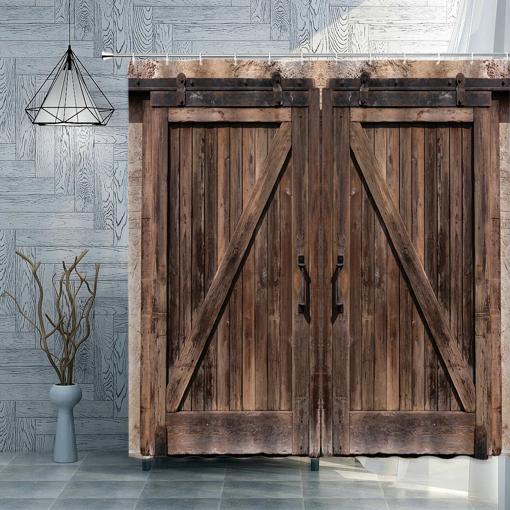 Занавеска для душа в деревенском стиле на дверь сарая, серая и бела...
