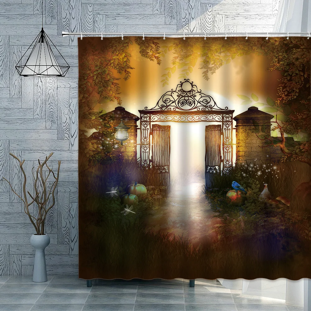 Занавеска для душа в пасторальном стиле, водонепроницаемая, с крючками