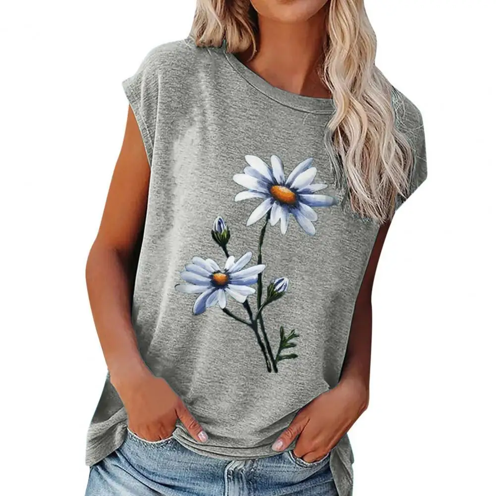 Женская футболка с коротким рукавом, простая летняя футболка из полиэстера с круглым вырезом и цветочным принтом, уличная одежда