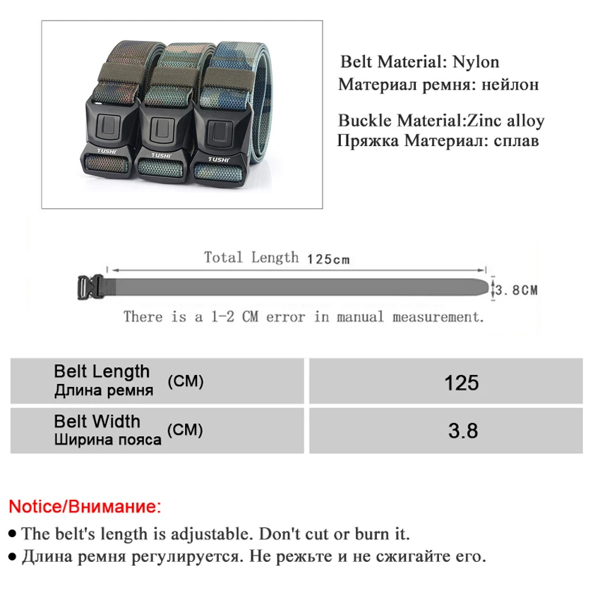 Ремень нейлоновый мужской, длинный Регулируемый быстросъемный такти...