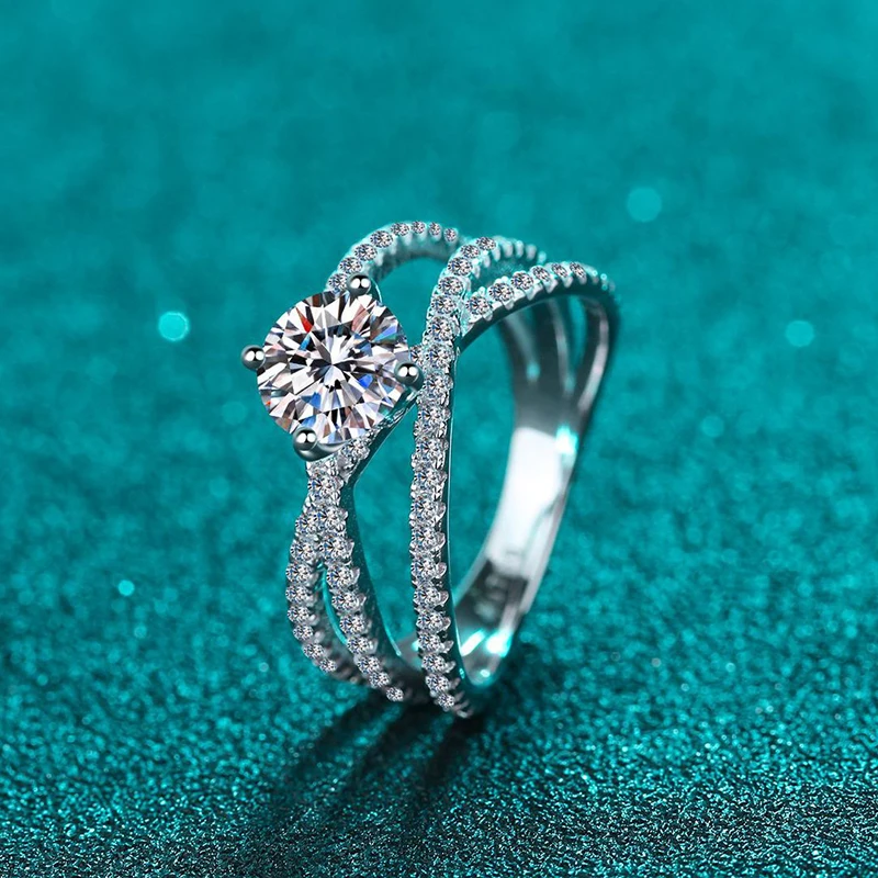 Кольцо с муассанитом, серебро 100% пробы, 1 карат, 2 карата, D, VVS1