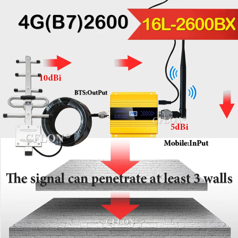 Что входит в комплект ----Только 2600 усилитель = Band7 2600 МГц усилитель сигнала + источник питания;16L-2600BX = Band7 2600 мгц 4G ретранслятор сигнала + 5dBi 360 ° всенаправленная антенна + 10dBi антенна яги + 10 метровый кабель + источник питания;