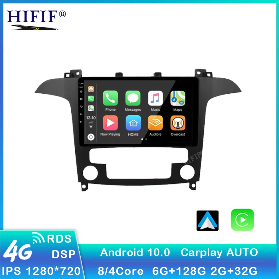 Автомобильный мультимедийный плеер 2 Din, автомагнитола с 9 "экраном, Android, Wi-Fi, GPS-навигацией для Ford S-Max, S, Max 2007-2015, на головном устройстве с рамкой