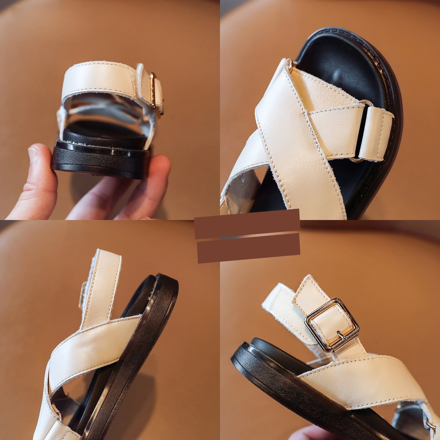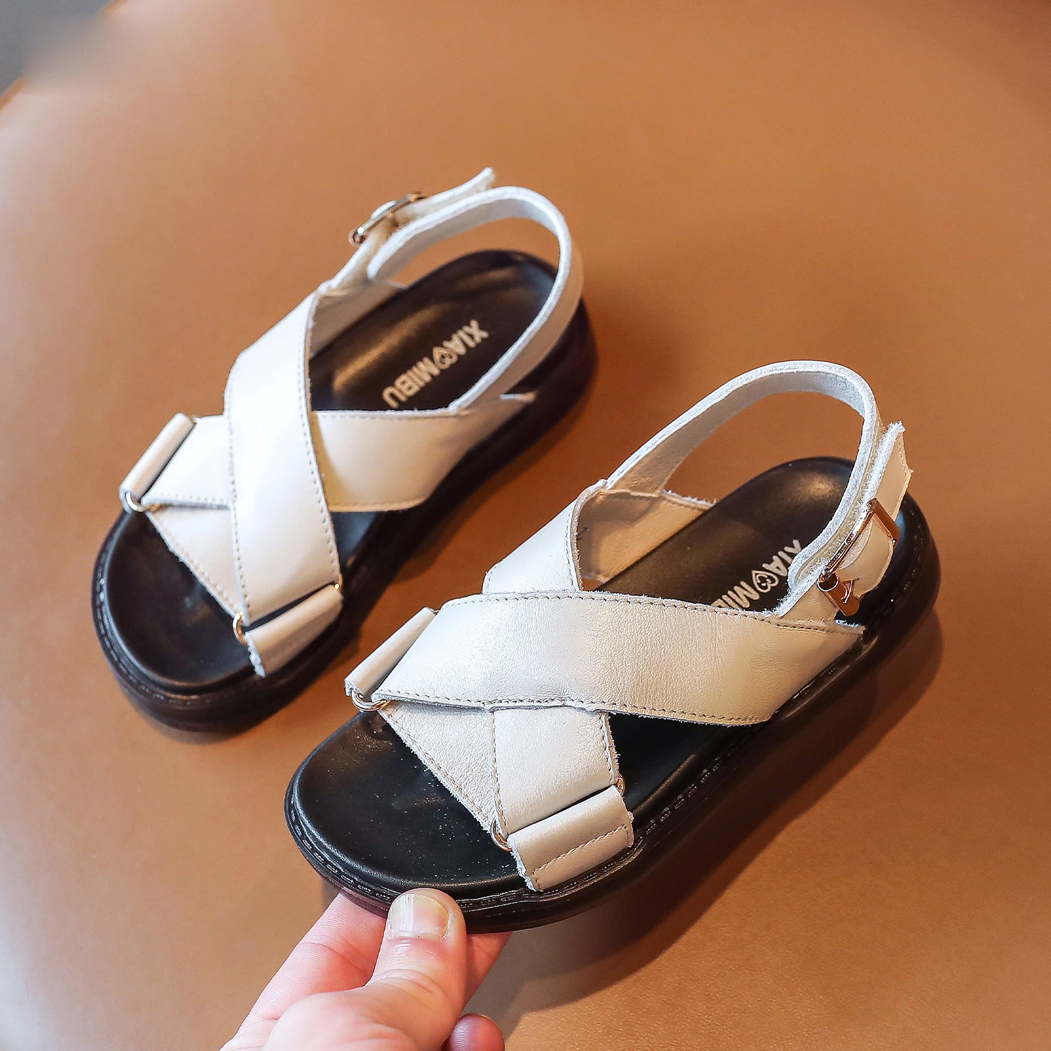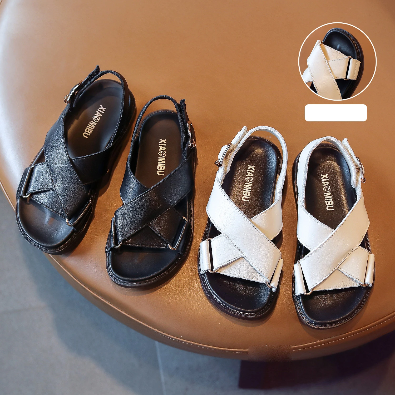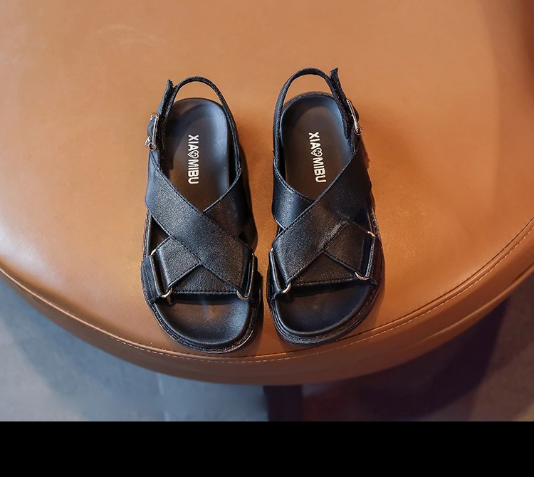 Летние детские пляжные сандалии; Брендовая детская обувь из натуральной кожи; Черные повседневные сандалии для маленьких девочек; Спортивная обувь для мальчиков; Модные сандалии