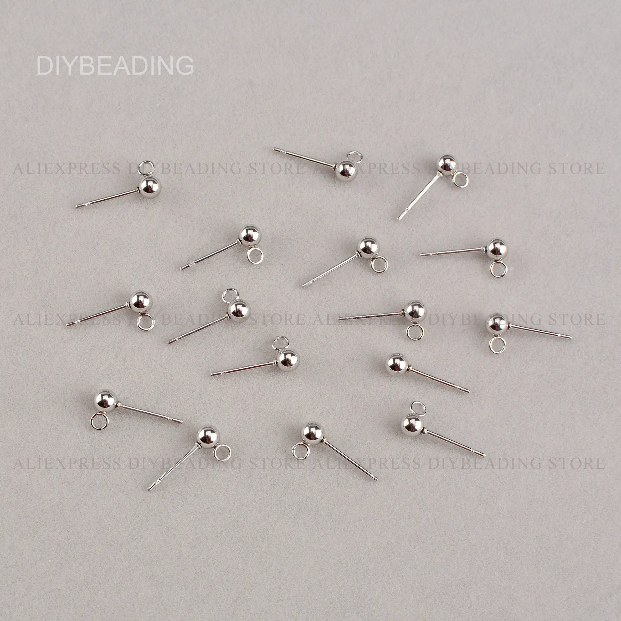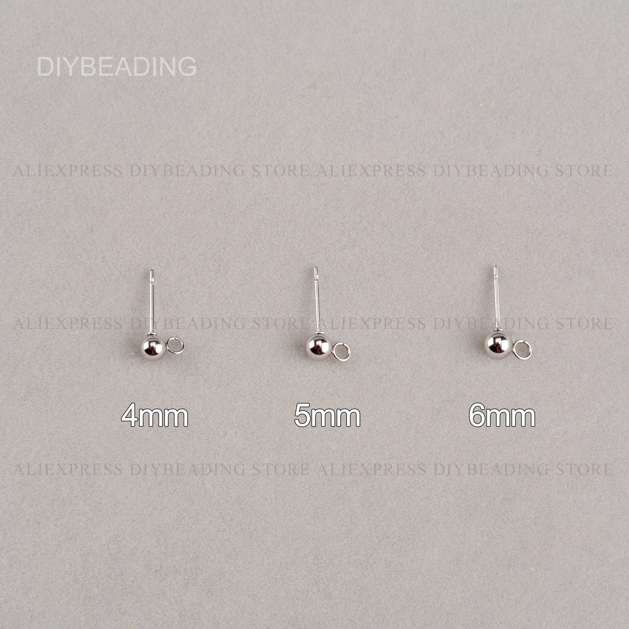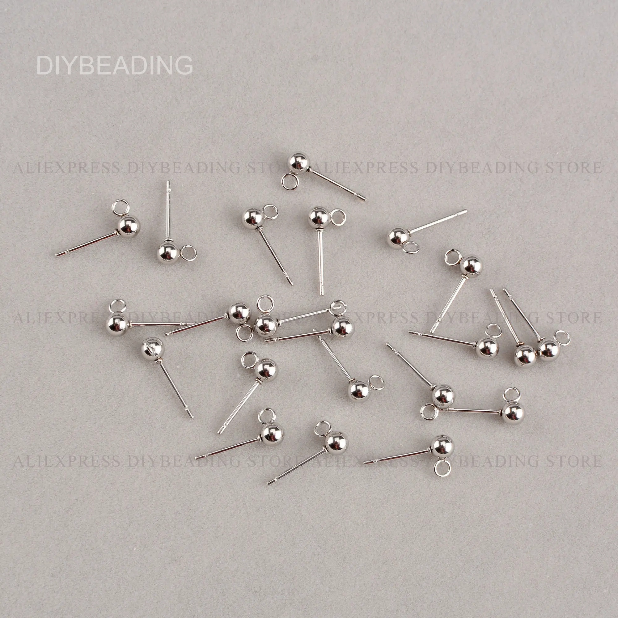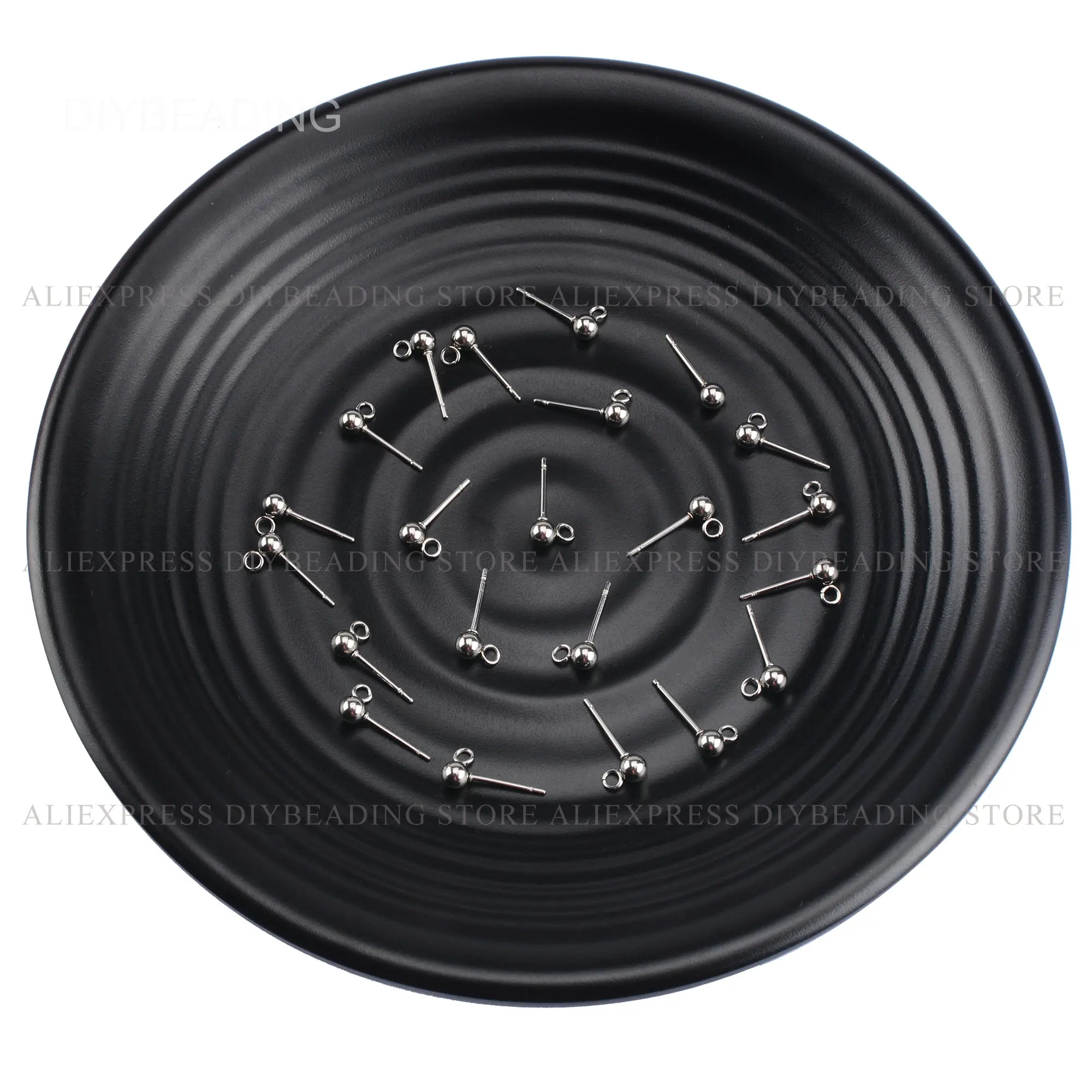 Серьги-шарики из нержавеющей стали 20-200 шт., столбышарики с кольцом для капель и висячих подвесокшпильки с шариками (4 мм, 5 мм, 6 мм)