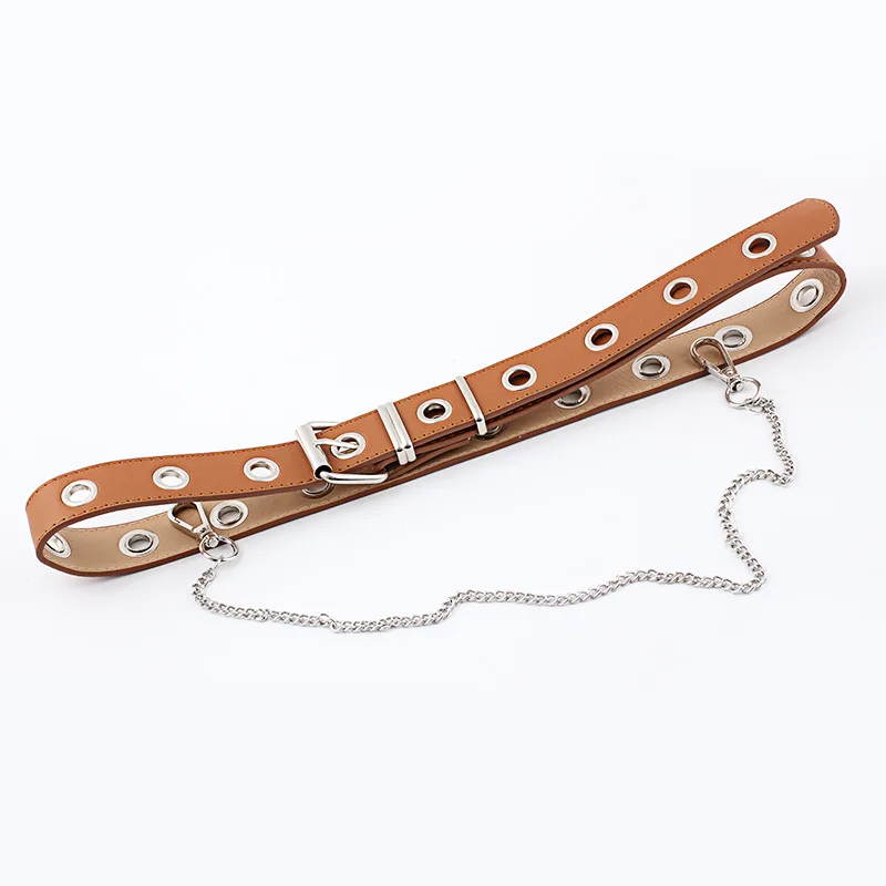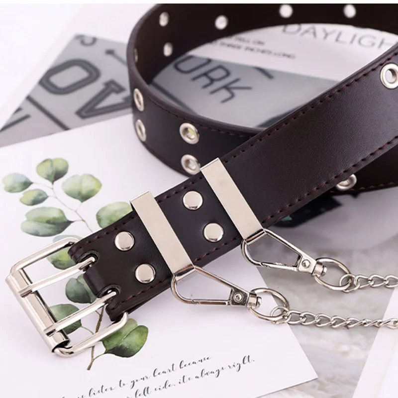Ремень с цепочкой в стиле унисекс, кожаный регулируемый пояс в стиле панк, с металлической пряжкой, для джинсов и шорт, разные цвета