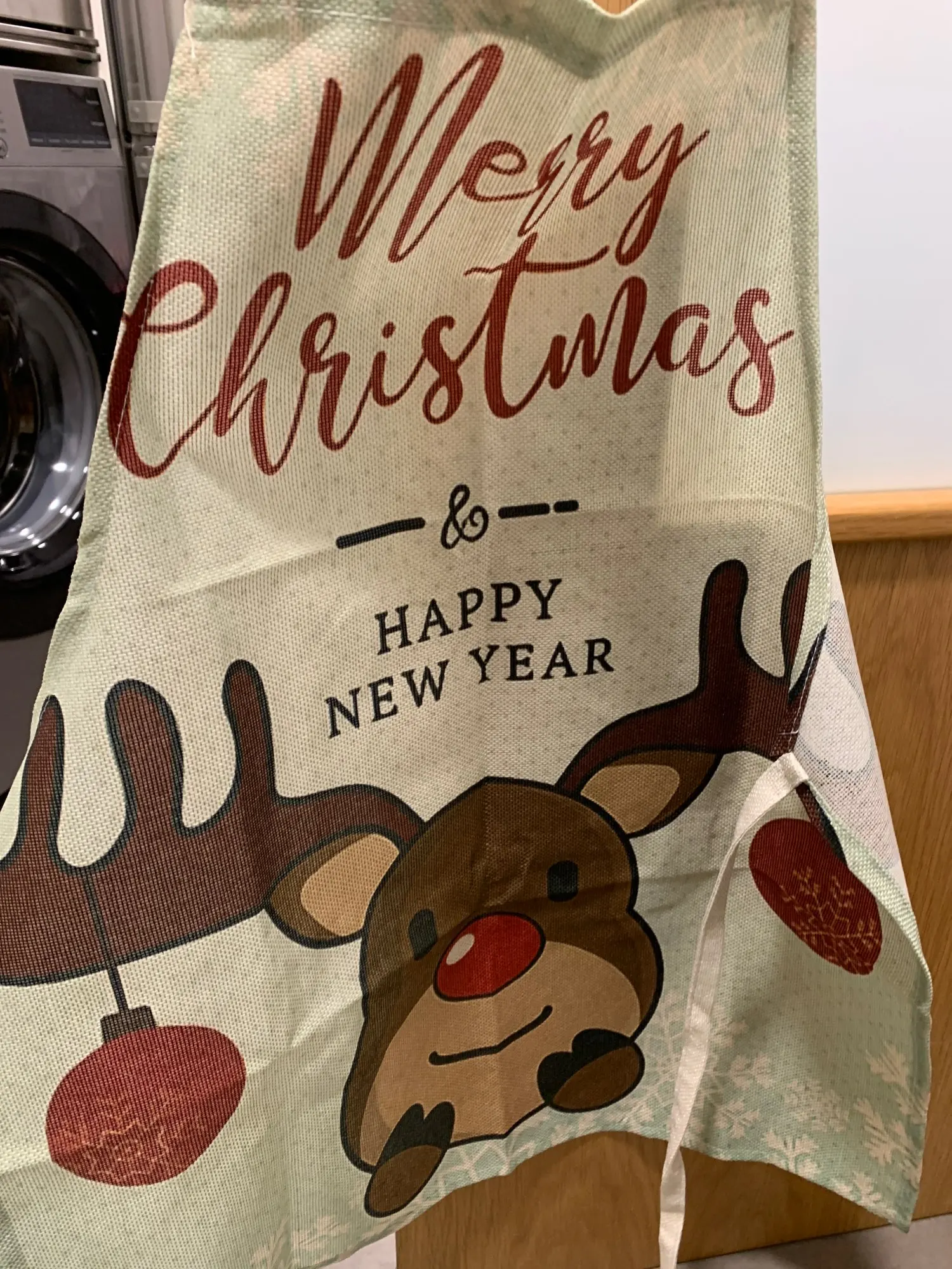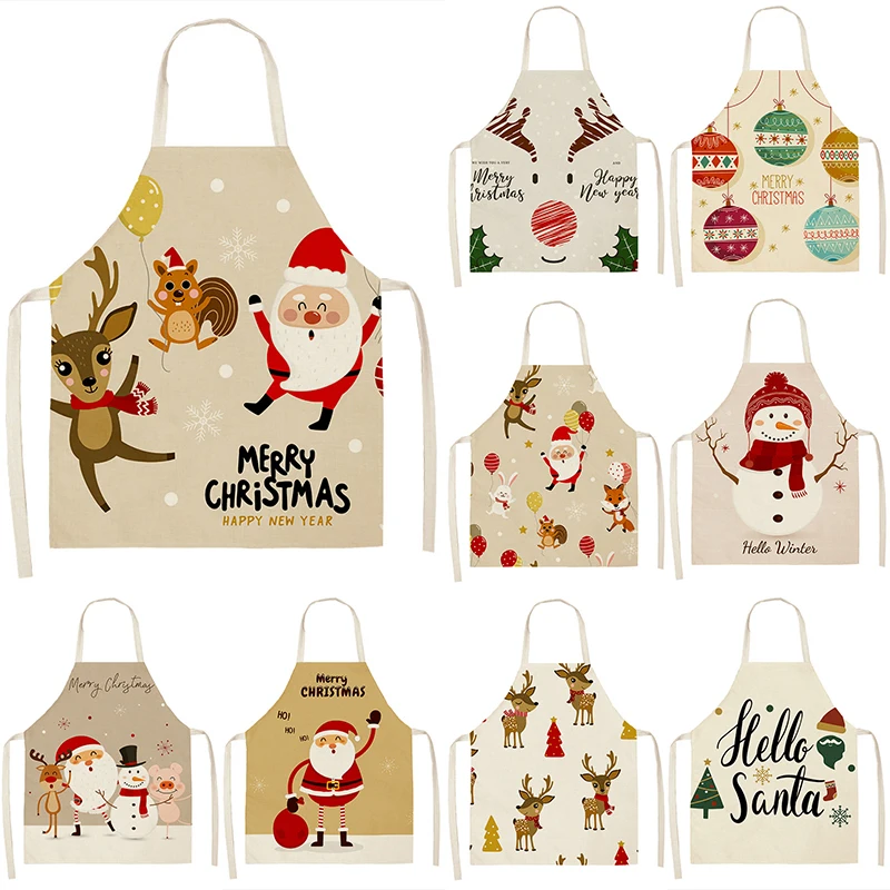 Новый фартук из хлопка и льна с рисунком Санта-Клауса, снеговика, оленя, Аксессуары для выпечки, Женский фартук, аксессуары для готовки, Мужской фартук, кухонный фартук