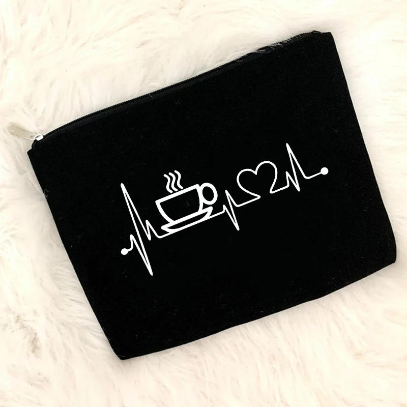 Мягкая холщовая женская сумка для путешествий с принтом кофе, органайзер для туалетных принадлежностей, портативная косметичка милая сумочка-косметичка