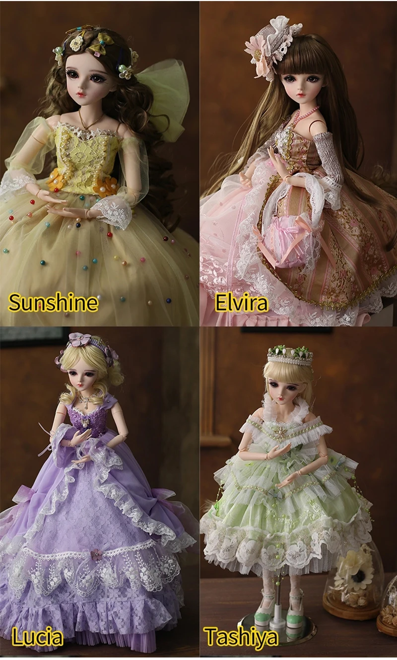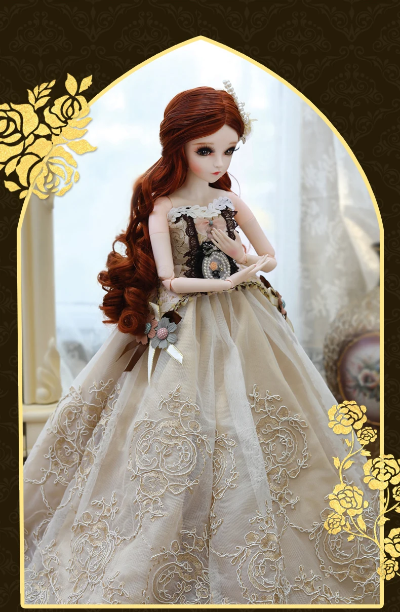 100% ручная работа BJD куклы; Упаковка включает: 1 кукла BJD + 1 платье/комплект одежды + 1 парик + 1 пара обуви + макияж лицо + аксессуары (100% как на фото)Высота: 1/3 куклы; Около 60 см/23,6 дюйма; 19 шарнирных шариков; Можно сделать много поз: можно сидеть и стоятьГлаза: 3D коричневый с изображением глаз и ресниц;Волосы могут быть съемнымиИдеально подходит для подарков на день рождения, рождественских подарков, подарков для девочек и куколПримечание: суставы и головки не могут быть выбраны; Часть корпуса-Жесткий силиконовый материал