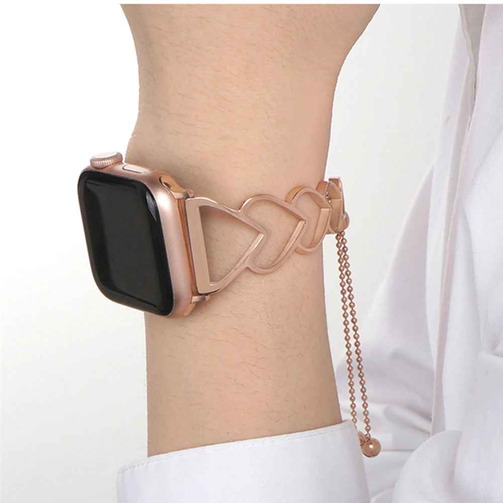 Металлический браслет в форме сердца для Apple watch 7 SE 6 5 4 ban...