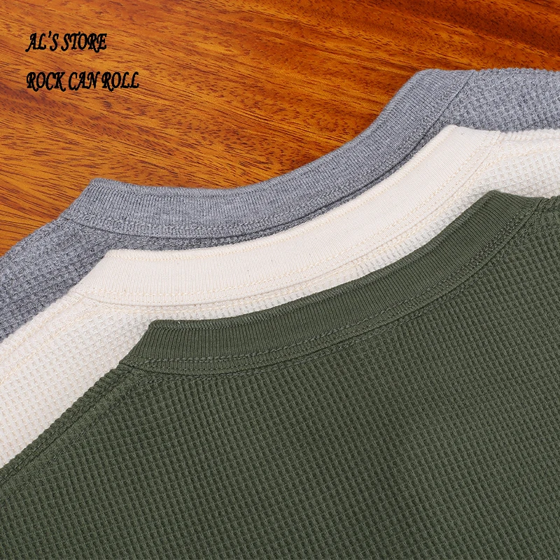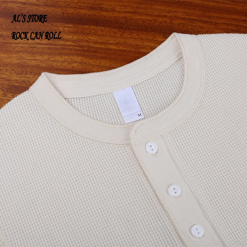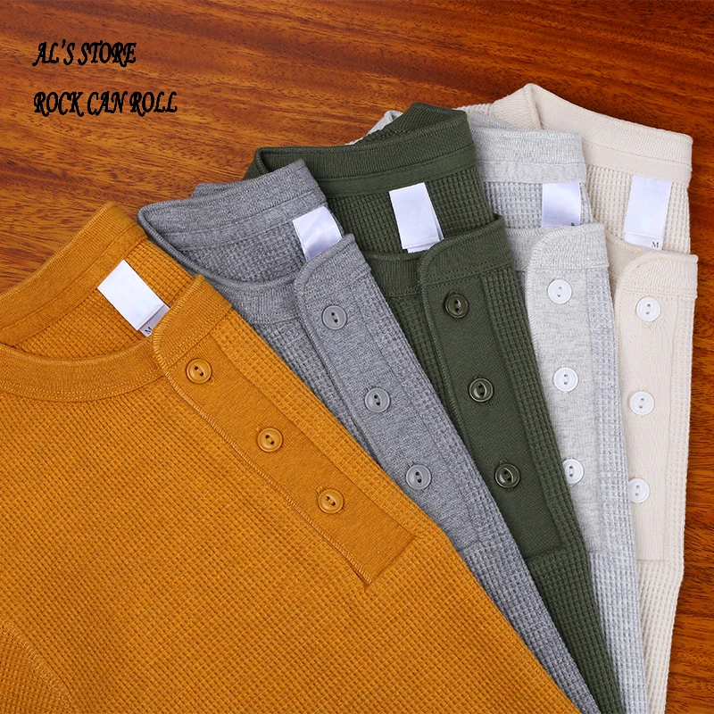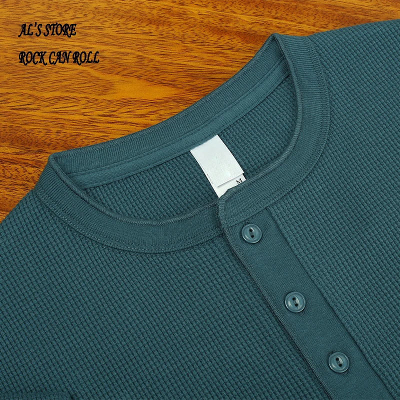 AL6117 прочтите описание! Азиатский размер 300GSM 10,5 oz Повседневная футболка Henley хлопок супер гибкий вафельный узор футболка 12 цветов