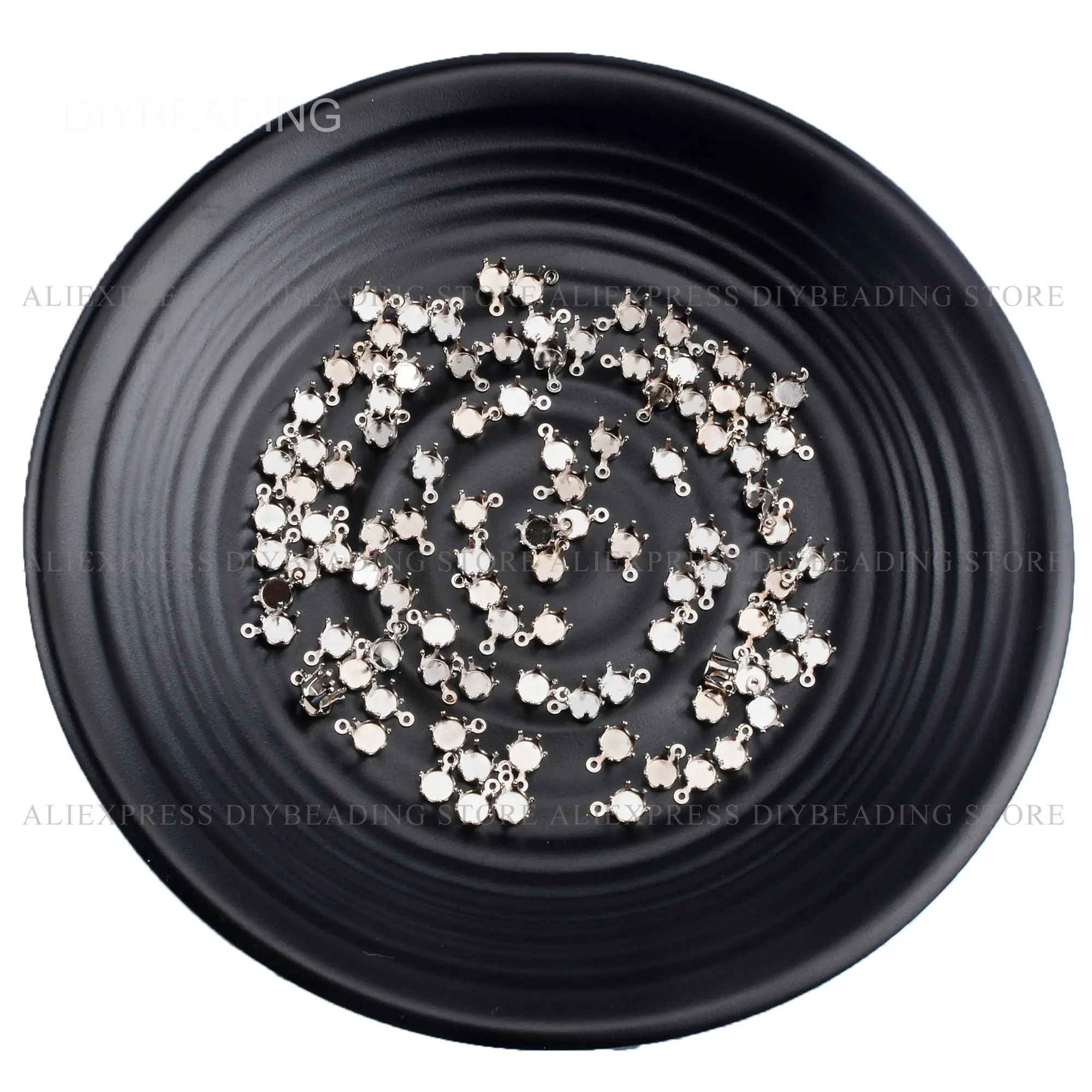 100-1000 шт. круглые закрепки6 зубцов пустые металлические штамповкибелая позолоченная латунная Пустая рамка для кабошона (6 8 10 12 мм)