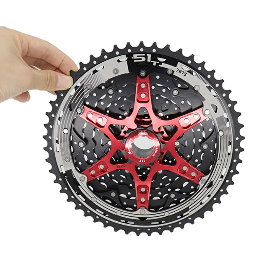 .12-Скорость широкий соотношение. Звездочка A7075 51T. Пауки из сплава. Запирающее кольцо и прокладки из сплава. Черный, красный. Вес-587 гКорпус свободного колеса: HG Shimano/SRAMСовместим с 8/9/10/11S HG концентратор