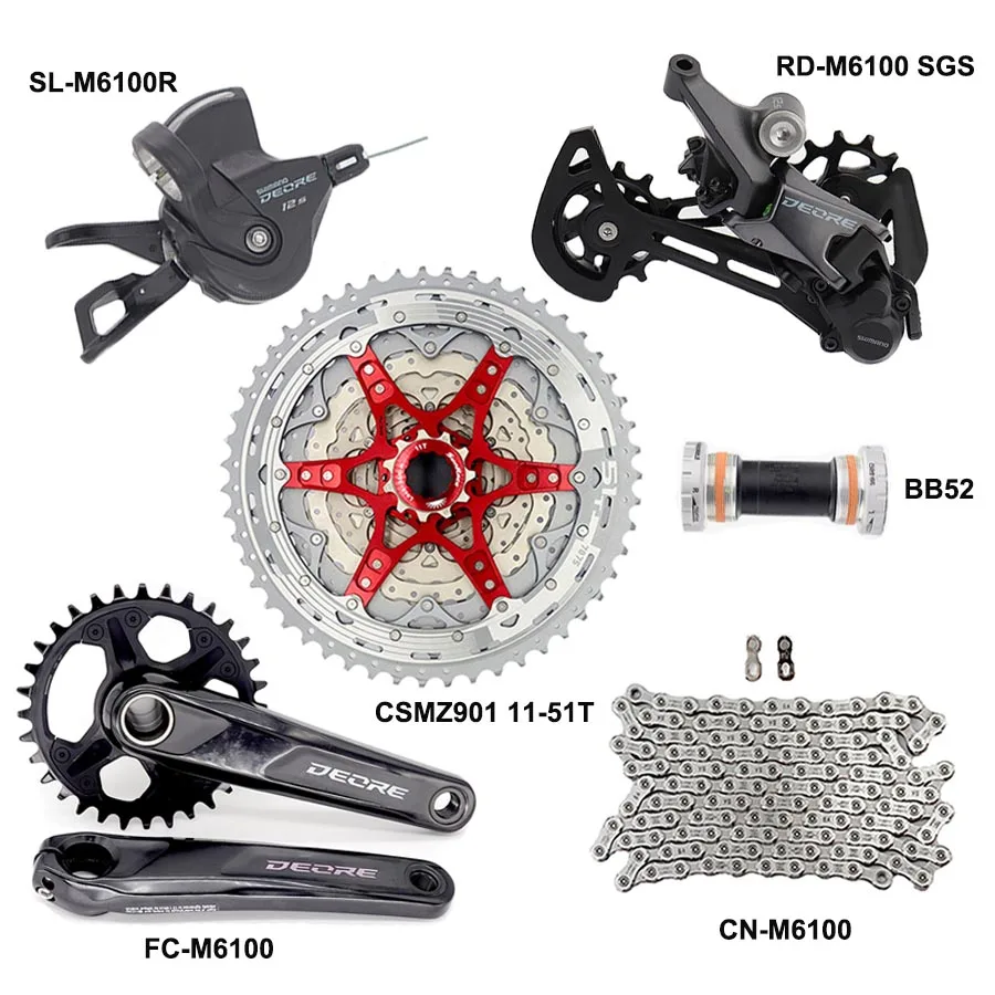 Набор Скоростей SHIMANO DEORE M6100, 12 Скоростей, задний переключатель SunRace CSMZ901, кассета KMC X12, цепной шатун M6120, 170 мм, 175 мм