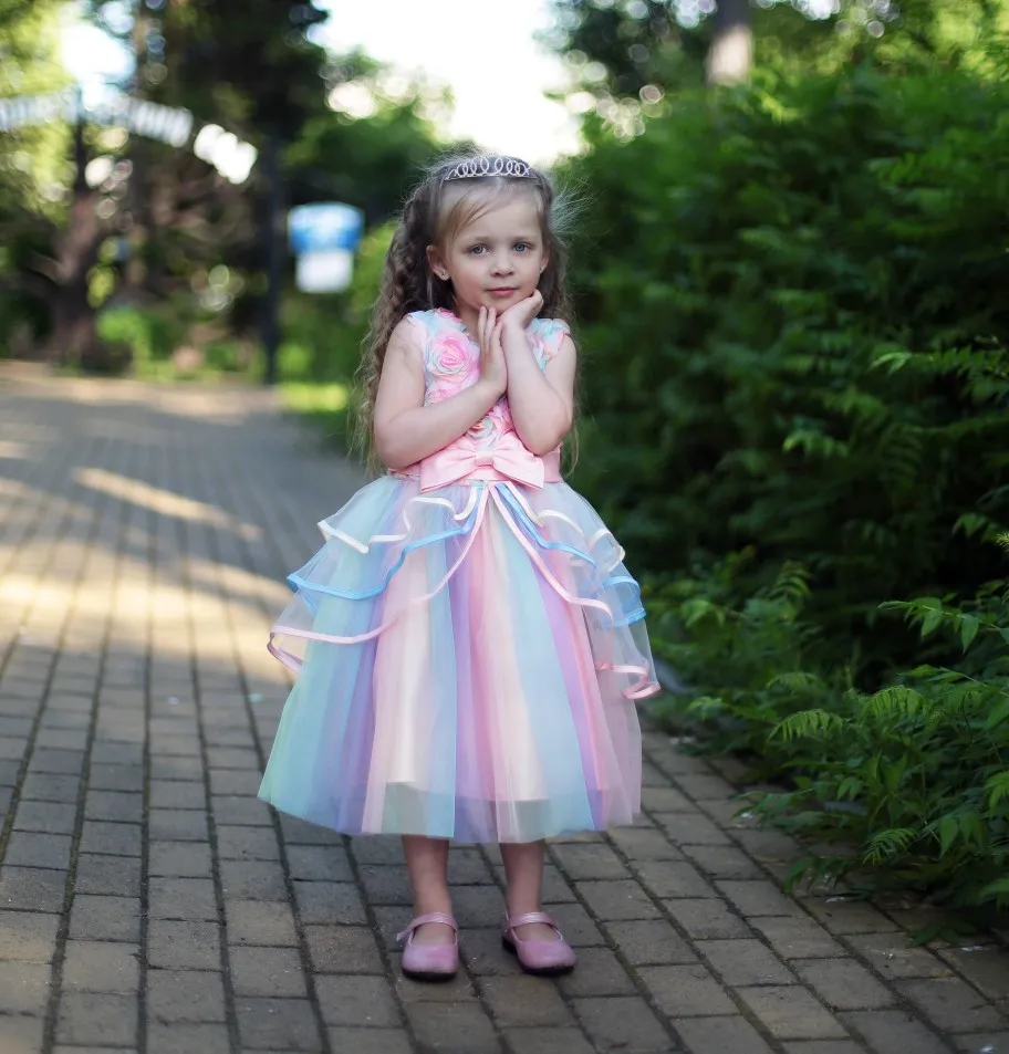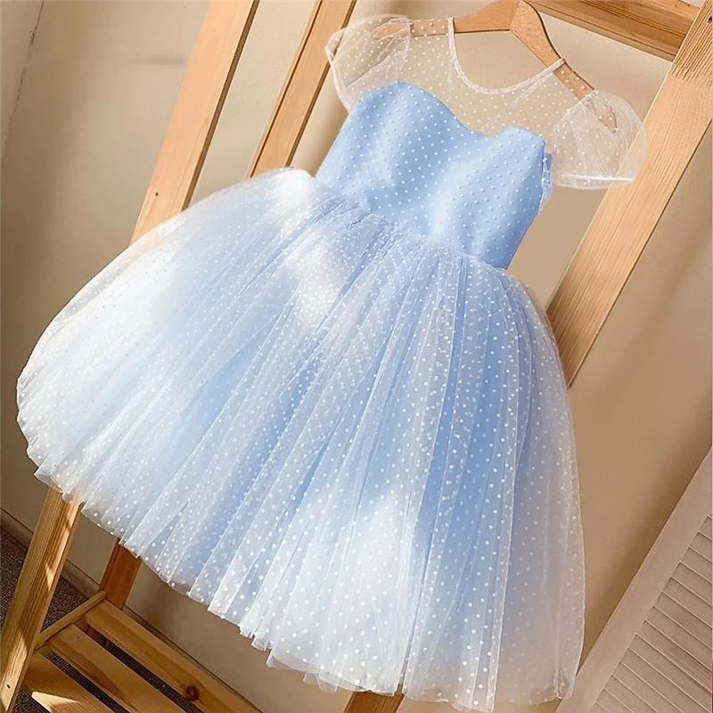 Причудливое детское платье для девочек, платье принцессы на свадьбу и день рождения, бальное платье, элегантное платье, розовое Тюлевое платье в горошек, летний Размер
