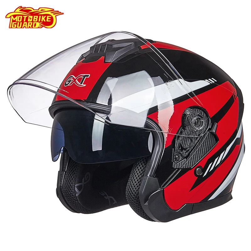 Полулицевой шлем GXT, шлем с двойными линзами, мотоциклетный электрический шлем из АБС-пластика, защитный мотоциклетный шлем для женщин и мужчин, мотоциклетный шлем